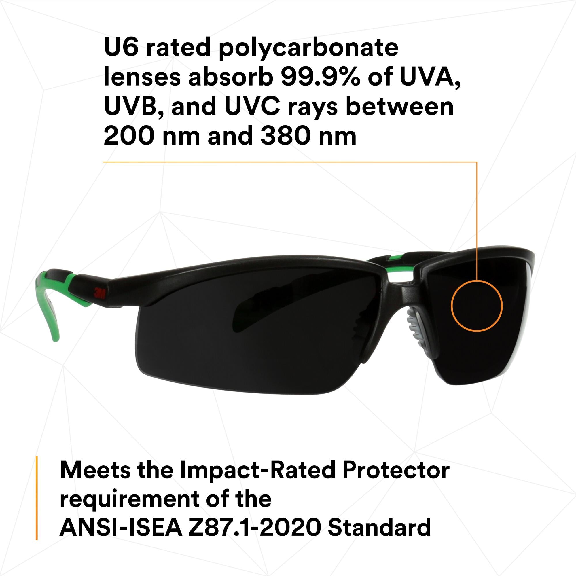 3M Solus 2000 Series, S2050AS-BLK, Black/Green Temples