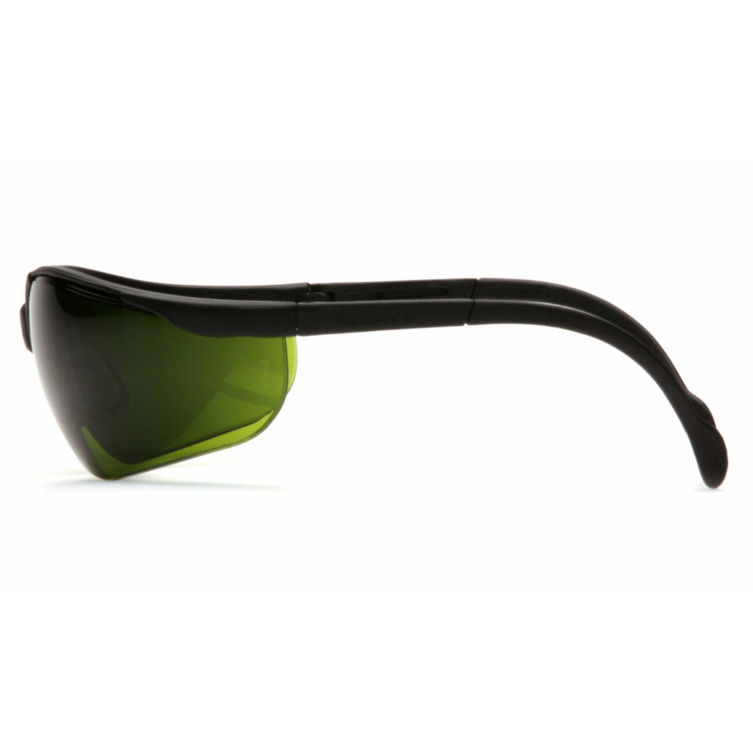Pyramex - Venture II - Black Frame/3.0 IR Filter Lens - 9.75 Base curved lens provides full side protection without distracting seams or traditional type side shields. Nose buds secure the glass and prevent slipping while providing a pillow soft fit. Fully adjustable temples - 4 size settings. Lenses provide 99% protection against harmful UV rays. Lenses are coated for superior scratch resistance.