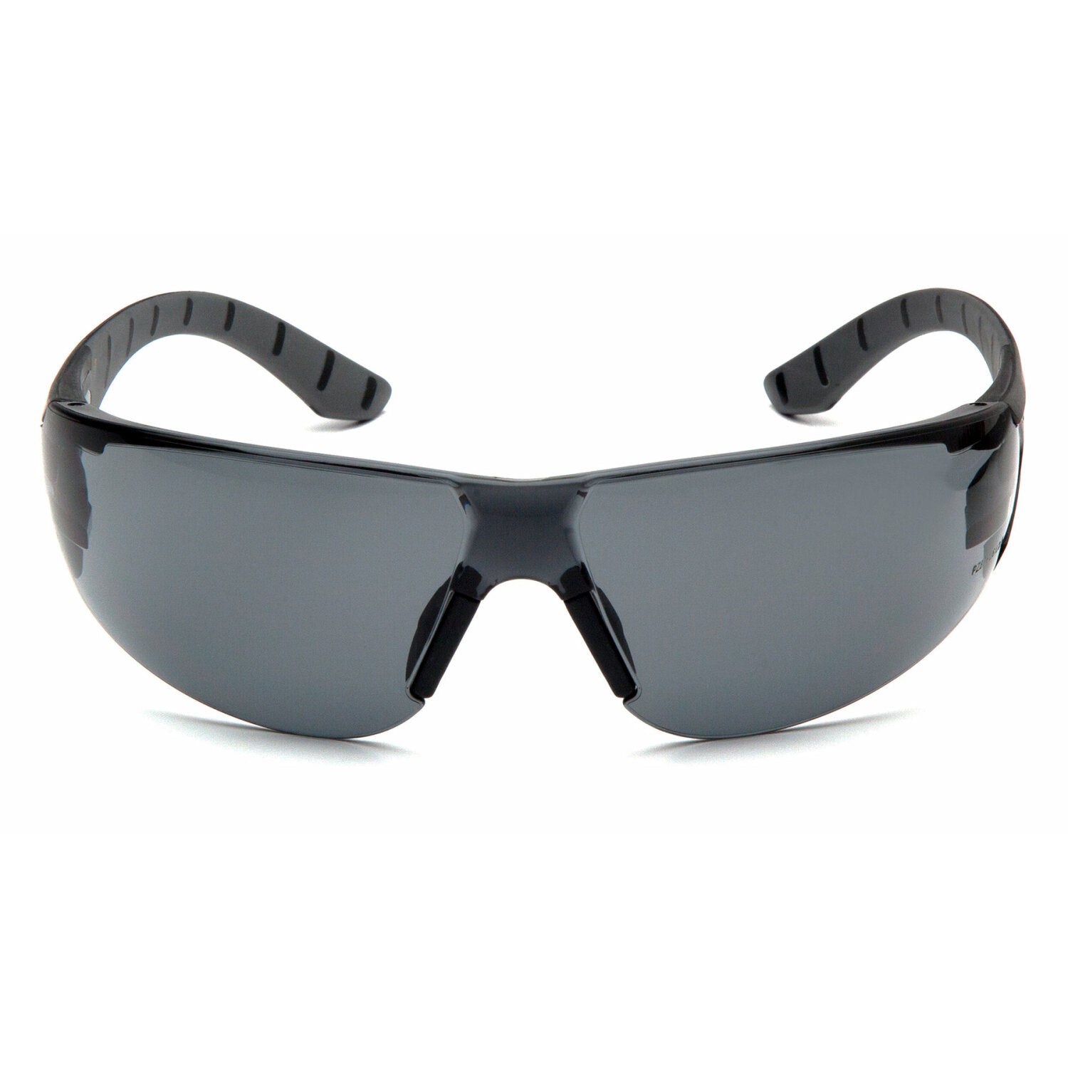 Pyramex - Endeavor Plus - Black-Gray Frame/Gray Anti-Fog Lens - Lightweight & durable protective eyewear. Built-in brow guard shields against overhead particles. Special dielectric hinge design contains no metal parts. Curved, co-material temples allow for comfortable all day wear. Scratch resistant polycarbonate lens provides 99% UVA/B/C protection. 9.5 base one-piece wraparound lens provides excellent side protection. Soft and adjustable nose piece provides a customized fit to prevent slippping.