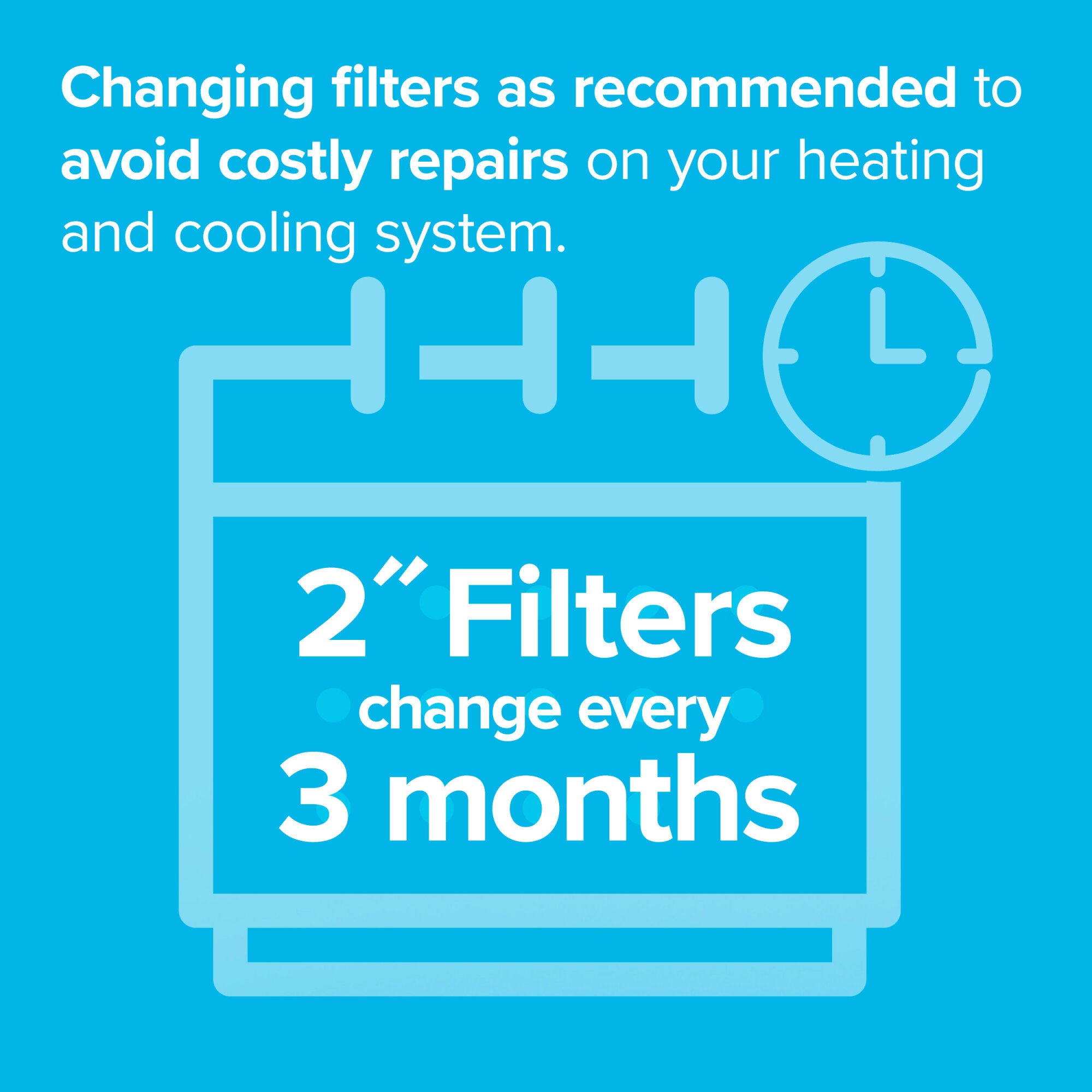 • For optimal performance of your heating & cooling system or hvac system, change your home air filter at least every 90 days for 1 in. and 2 in. filters, and at least every 12 months for 4 in. and 5 in. filters