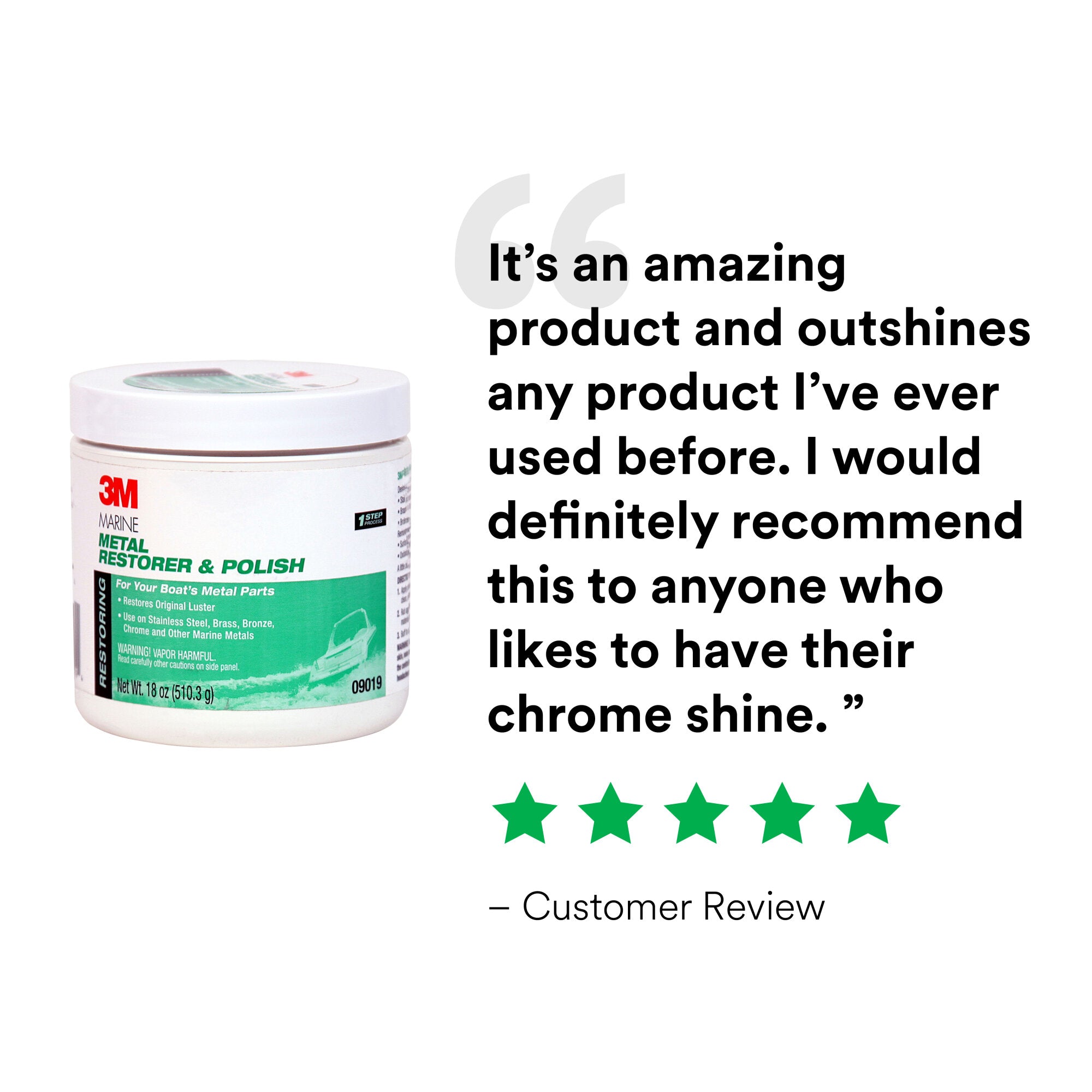 3M Metal Restorer and Polish restores the sparkle and shine on metals throughout boats. This polish rejuvenates the beauty of metals by removing surface rust, oxidation, corrosion and tarnish. This easy-to-use paste brings back the original luster to make metals look new again.Transform Metals from Dull to Lustrous