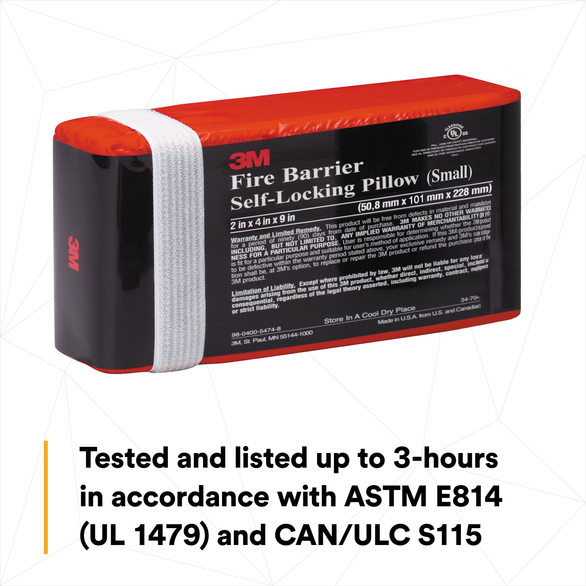 3M Fire Barrier Pillows are self-contained, intumescent products designed for use in through-penetration firestops, providing up to 3 hours of protection. This fire barrier pillow expands to form a hard char that tightly seals against flame spread, smoke and toxic gases. Pillows are also engineered to be re-enterable and re-useable for new or retrofit installations.Designed for Fire Protection and Prevention