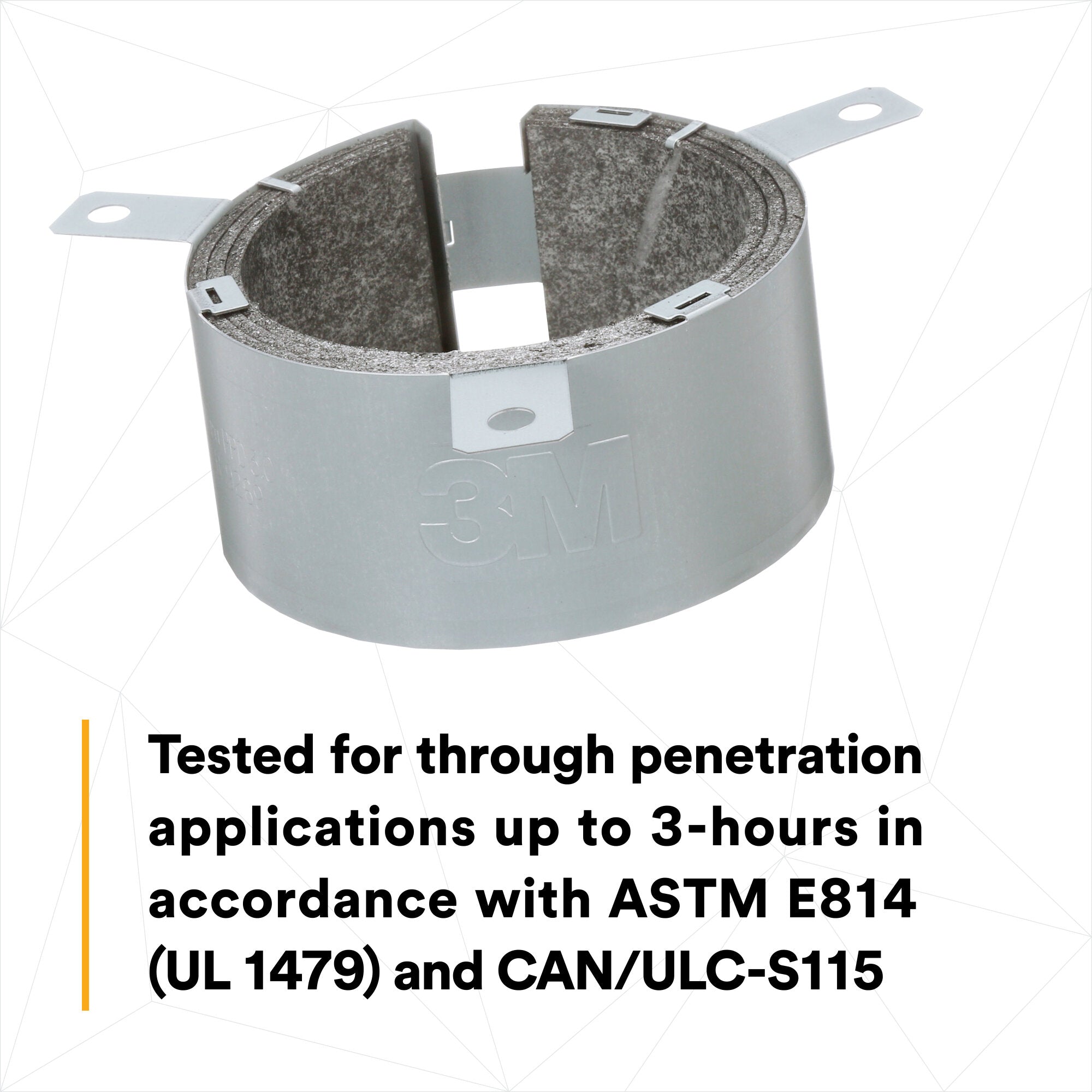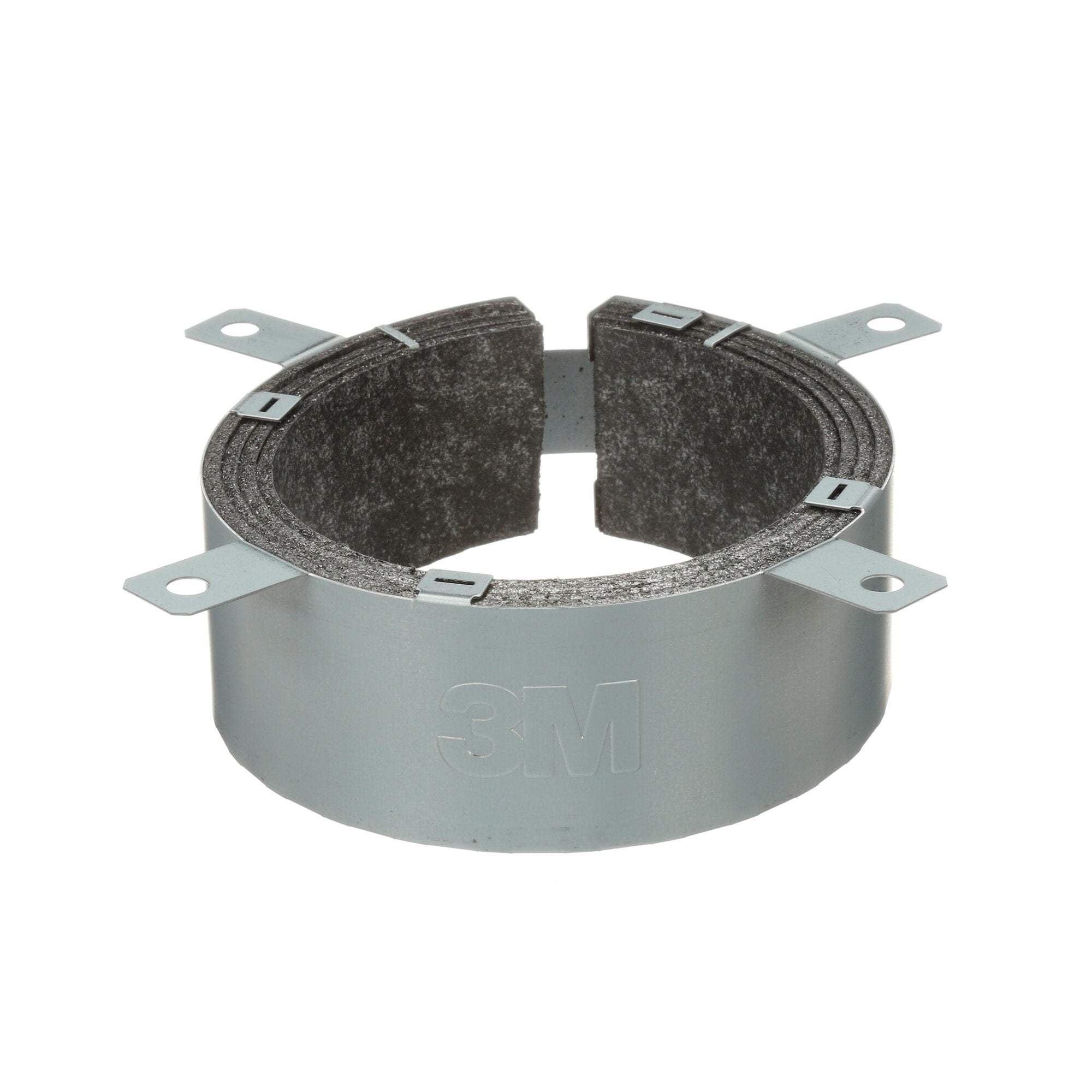 Incorporates our 3M™ Fire Barrier Wrap Strip FS-195+ and is specifically designed to be a firestop for non-metalic, 6” pipe penetrations. This one-piece metal collar is built to fit securely around the firestop wrap strips – no additional assembly is required. Tested for up to 2 hours of fire protection in tested and listed systems, the device holds firestop material in place and helps ensure proper closure during fire. Metal tabs make for fast, easy anchoring to wall or floor slabs with common tools and hardware such as toggle bolts for gypsum or masonry anchors for concrete. (Hardware sold separately.) The result is a permanent, fixed firestop that also contributes to the structural stability of the penetration.