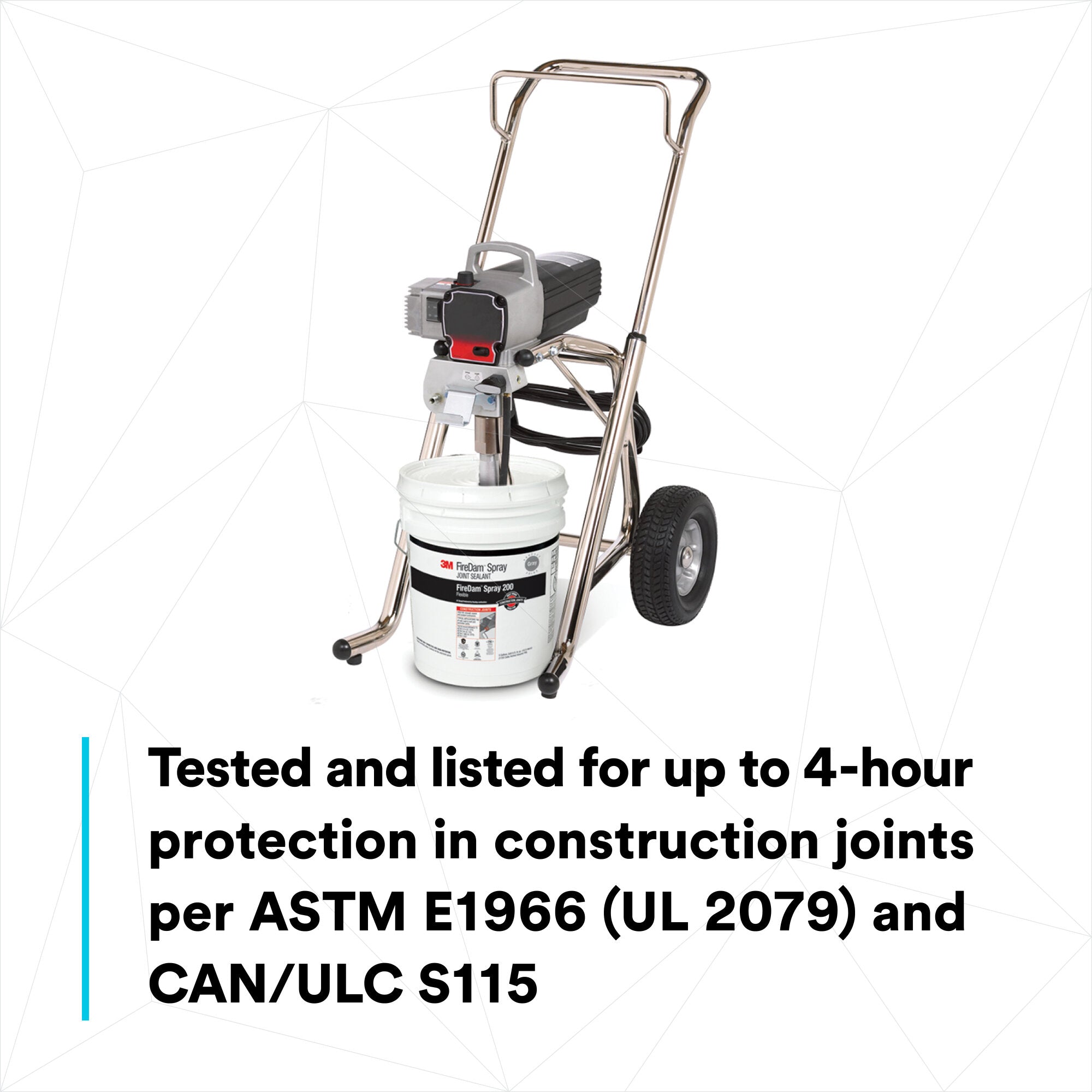 3M FireDam Spray 200 is a sprayable material that dries to form a tough, elastomeric coating. It will firestop building joints, curtain wall perimeter joints and through penetration seals to control the transmission of fire, heat, smoke and noxious gas. This water-based firestop sealer is applied with conventional airless sprayers, dries quickly and cleans up easily.Effective Fire Protection in a Flexible, Durable Coating