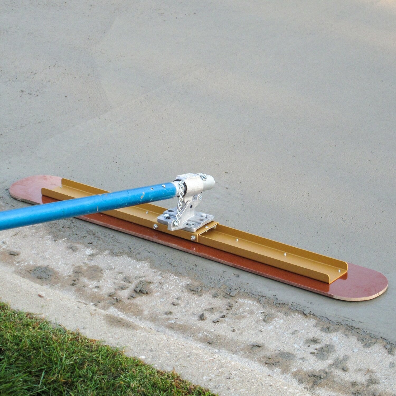 This uniquely dense float wears like magnesium for extremely long life. Level and smooth a large area of concrete this tool. The 3/8 In. thick laminated canvas-resin blade works the concrete like a wood float creating a rough texture that opens the surface making it popular for use with color hardeners and other decorative concrete applications. The resin doesn't soak up water like wood after repeated use and cleanings. The 48" blade has machined edges and rounded ends for floating without gouging. A heavy-duty C-Channel design provides extra rigidity and flatness for this 7" wide blade. The 3-1/2" wide C-Channel provides a perfect fit for weights when needed. Designed to accept 4-hole Brackets, sold separately. Kraft Tool's Double-Tilt Action Brackets (CC270, CC294, CC296, GF10330) or Single-Tilt Action Brackets (CC696, CC800) are popular choices. The Kraft Tool EZY-Tilt® II Double Tilt Bracket (CC294) is recommended for best results. Handle choices are determined by the user's choice in bracket.