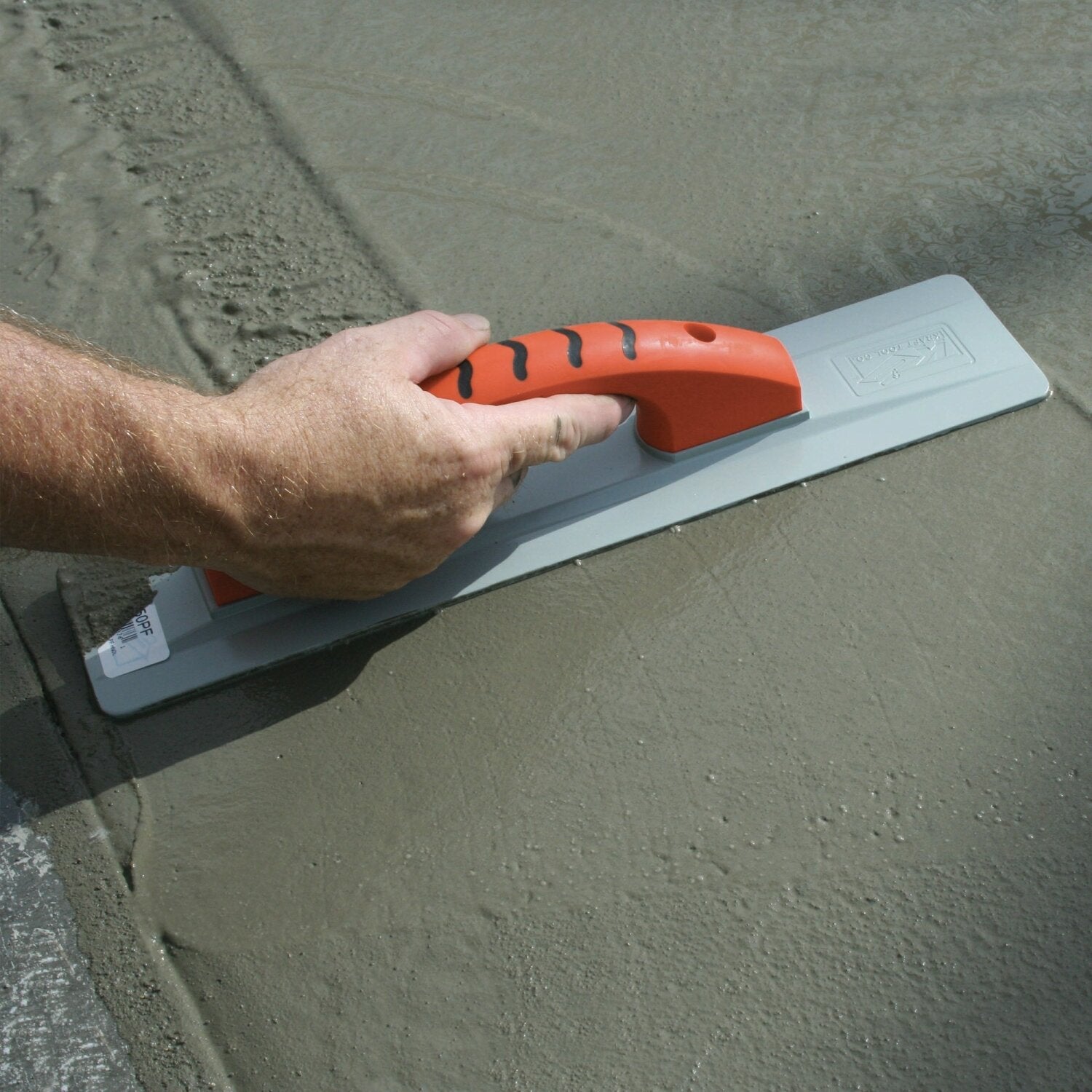 Cast magnesium hand float designed for superb floating action on cement. The 16" blade features beveled edges and smooth rounded corners that gives this float the perfect "broken-in" feel. The wider blade on this float covers more area on big jobs. Durable, lightweight magnesium smooths and levels the concrete before finishing. The ProForm® soft grip handle is precisely positioned to give the float perfect balance for professional floating with less fatigue. Kraft Tool's signature hand float with patented ProForm® soft grip handle (US Patent #6,473,939 B1 and US Patent #6,821,468 B2) provides a comfortable grip. The bright orange handle is easy to spot on a jobsite even after use. The enhanced texture ribbing of the handle reduces fatigue and provides a great grip even when wet.