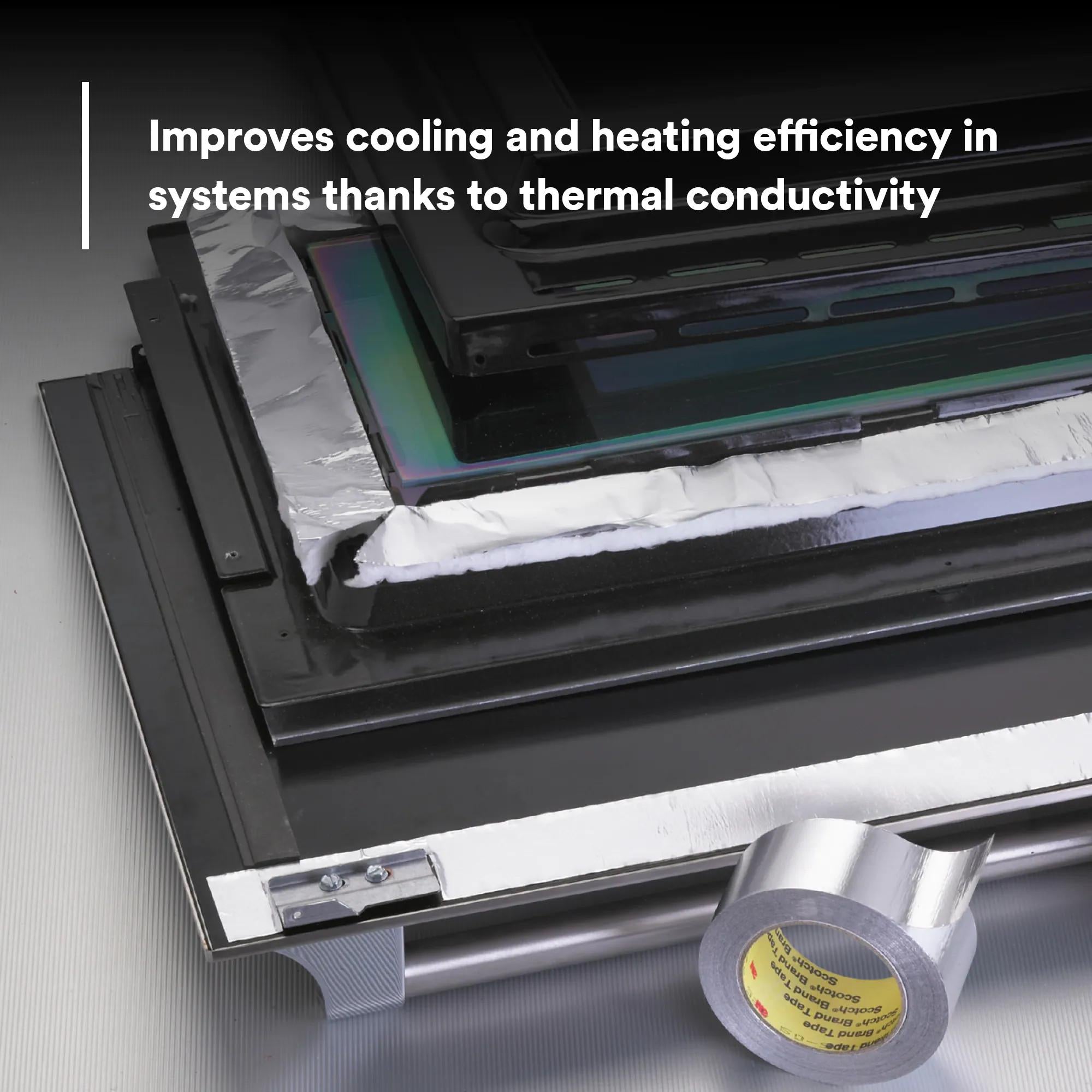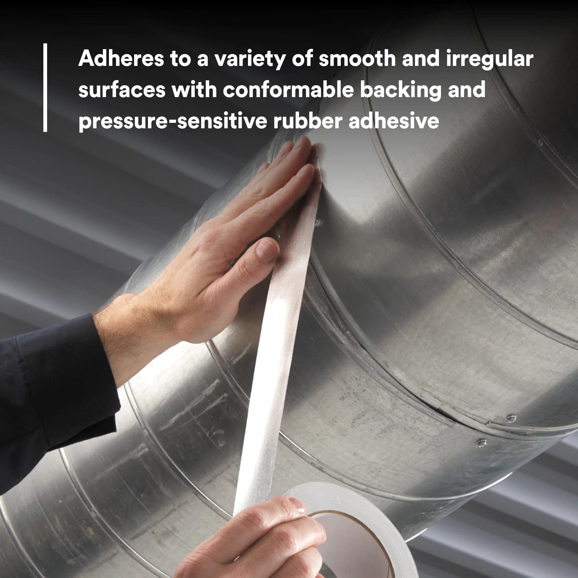 Scotch Aluminum Foil Tape 3311 is a general purpose repair and maintenance tape that is excellent for temporary and emergency repair of metal surfaces. Featuring a high tack, pressure-sensitive, rubber adhesive and conformable backing, this dead-soft tape provides easy adhesion to smooth and irregular surfaces, like low energy substrates. The sturdy aluminum foil backing is set on a paper liner for ease of use. Achieve long-lasting results with this tape which offers resistance to flame, moisture, UV degradation, water vapor, odor and smoke transmission. It's thermally conductive, heat reflective and light reflective, making it perfect for sealing aluminum faced insulation seams and joints. This 2.0 in (5.1 cm) versatile tape can be applied in most weather conditions, performing well in temperatures ranging from -10 F/-12.2 C to 180 F/82.2 C, and is UL723 rated. For durable results you can trust from 3M, use Scotch Aluminum Foil Tape 3311 for metal repairs and maintenance.Resists Flame, Moisture, Weather, UV Degradation