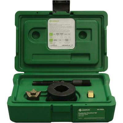 Punch and notch in one easy operation for fast pushbutton (oiltight) installation. New die design with optimized depth for widest range of materials and drivers. Designed for use with any Greenlee hydraulic driver - no adapters required. Durable, high-grade steel provides maximum life in mild and stainless steel. Includes: punch, die, drawstud, and nut.