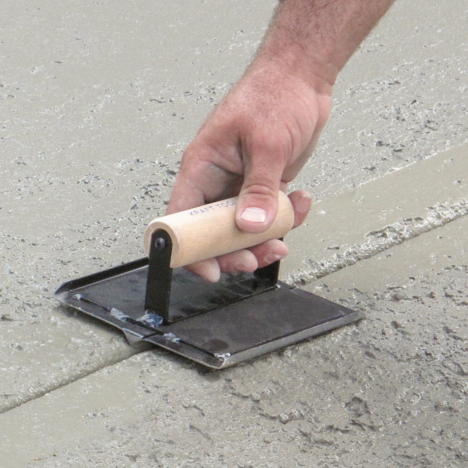 Heavy-duty groover cuts clean, smooth professional control joints every time. Uniquely made from the quality steel with a broken-in face that won't wear out with extended use like stainless steel. The tool creates a groove in wet cement to control expansion and contraction and relieve stress points. This 6" groover features a bit that has a 1/4" radius and is 3/4" deep. The radius creates a smooth edge to prevent that edge from chipping with wear. The single-piece formed groove provide a smooth professional finish. The closed end groover bit won't allow material to build up inside for a long lasting perfect groove. A 6" square top plate reinforces the tool and provides additional strength for moving through slabs. The sides are turned up to glide across the concrete without gouging. The heavy-duty tool is painted for long wear. A smooth wooden handle completes the tool. Matching Walking Groover is available.