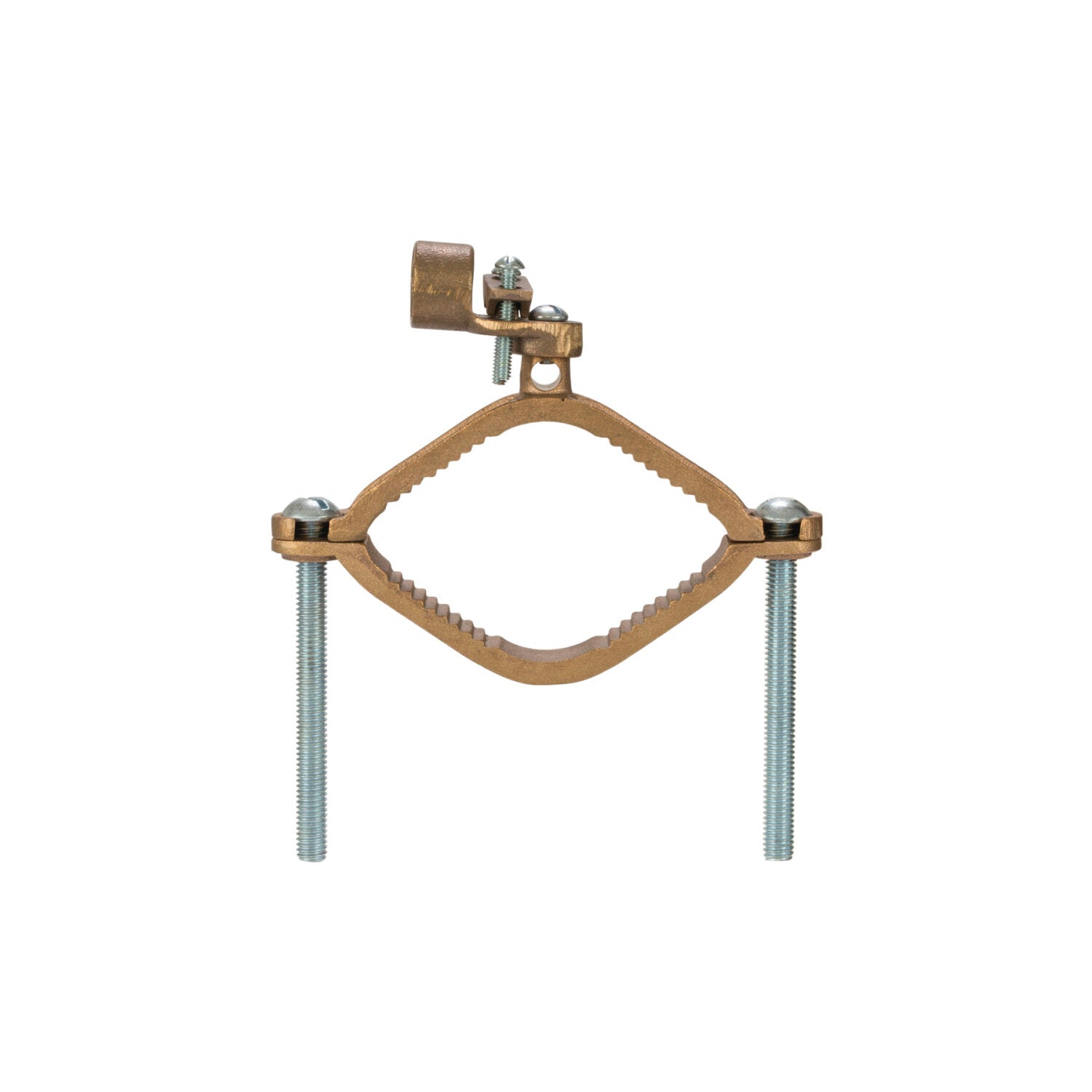 Range of Sizes: EG-15 clamp fits pipes between 2-1/2″ to 4″ in diameter and rotating bronze hub fits 1/2″ rigid conduit or ground conductors
