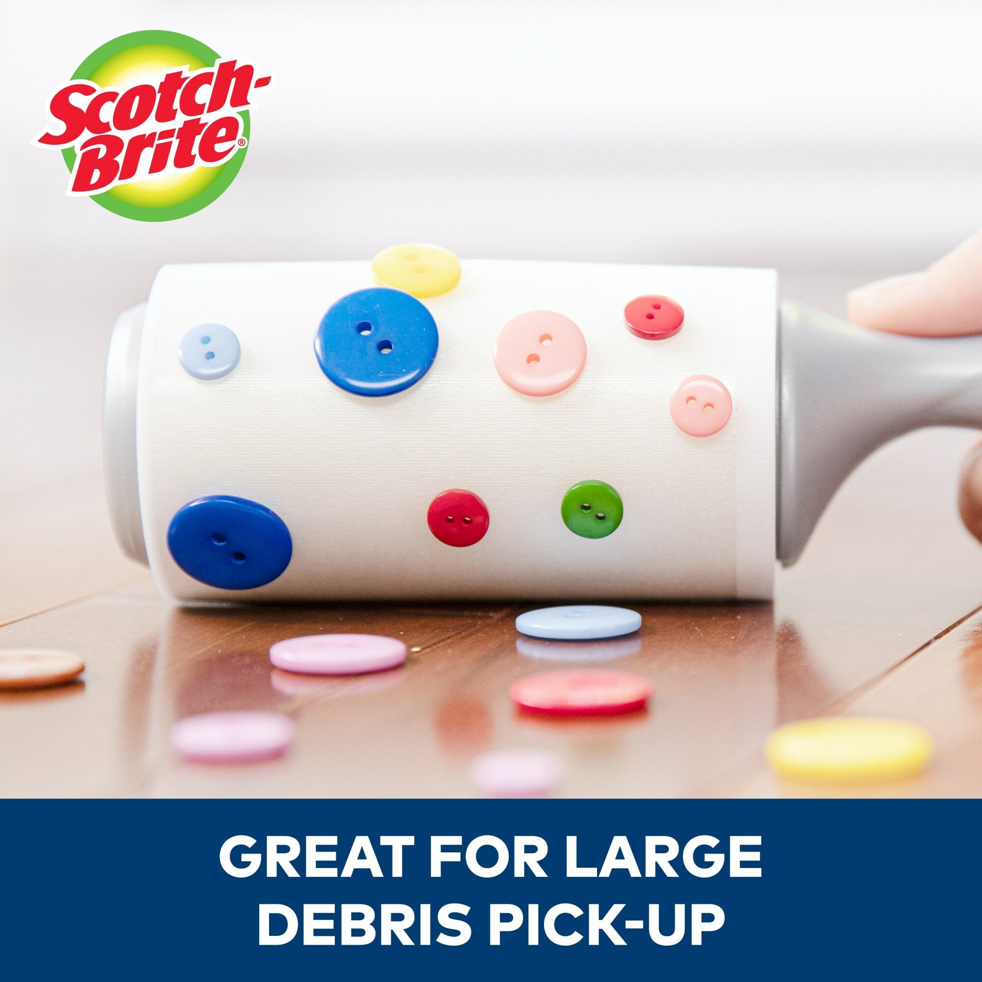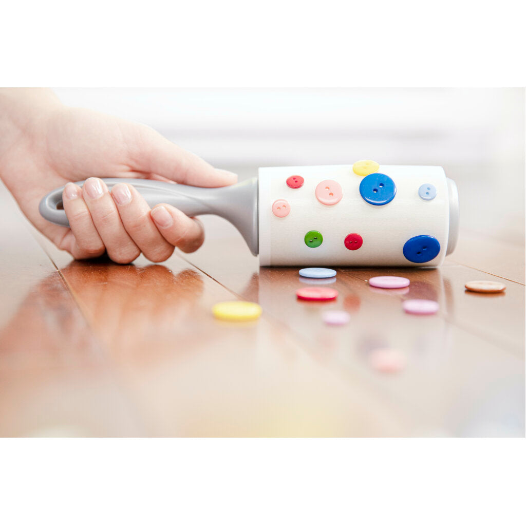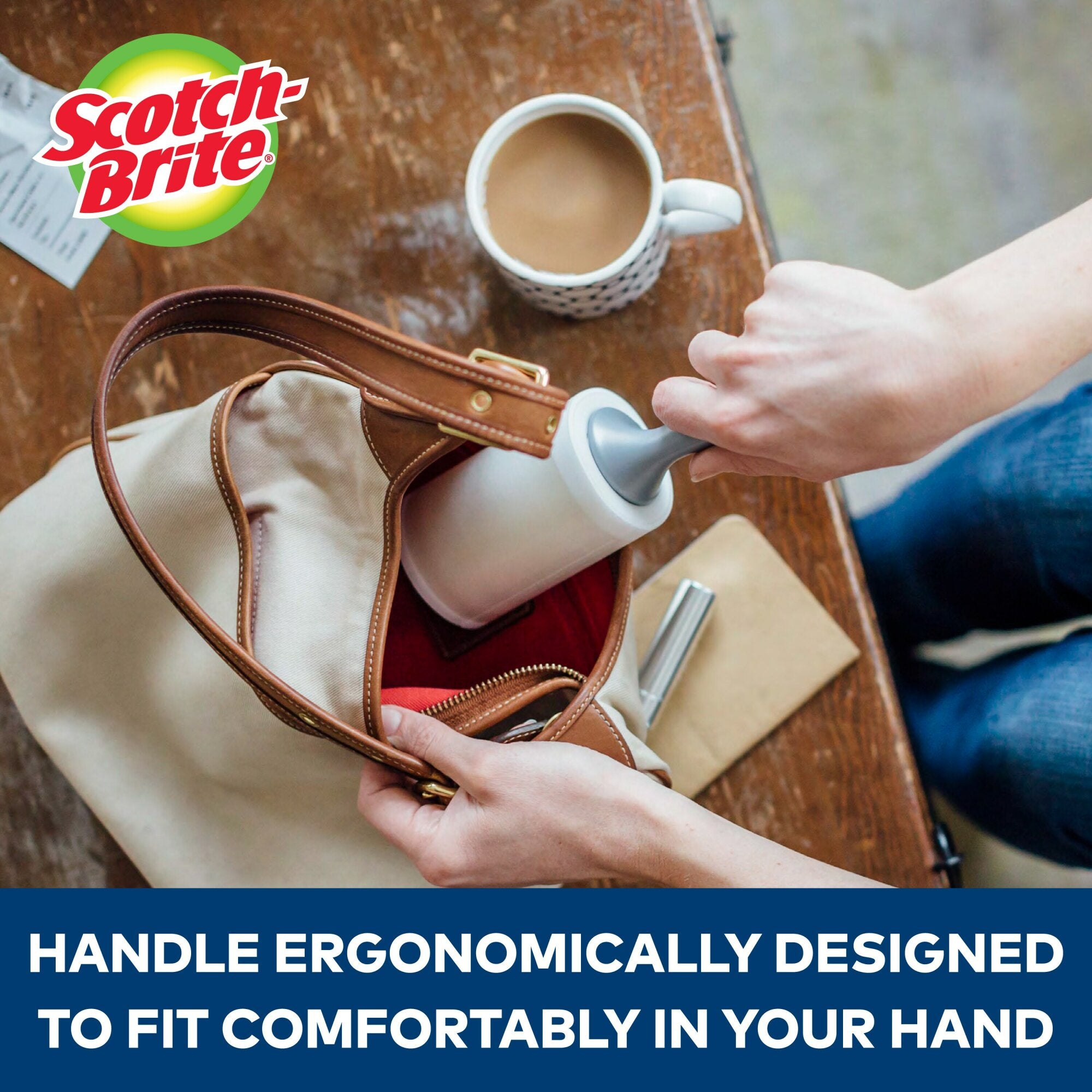 Abrasive and adhesive products used to remove hair, lint, and other small fibers from clothing, upholstery or linens. Lint removers are typically one-sided adhesive sheets wrapped around a barrel that is mounted on a central spindle and handle. Hair removers are typically combs, brushes, or abrasive materials used to pick hair or fur off surfaces.When life gets messy, rely on the Scotch Brite 50% Stickier Lint Roller to pick up the pieces. Whether you just devoured a lemon poppy seed muffin or you took a tumble in your Chow Chow's dog bed, this lint roller is 50% stickier than standard Scotch Brite Lint Rollers. That's because it has 50% more Scotch Brand adhesive for a crumb catching grip you can rely on. The rolling surface means you can make quick touchups on the fly, and the ergonomic handle feels comfortable in your hand as you roll away the mess. Go ahead and eat those cheesy cheese puffs or wrestle with your furry friend–then roll away the evidence with the Scotch Brite 50% Stickier Lint Roller.