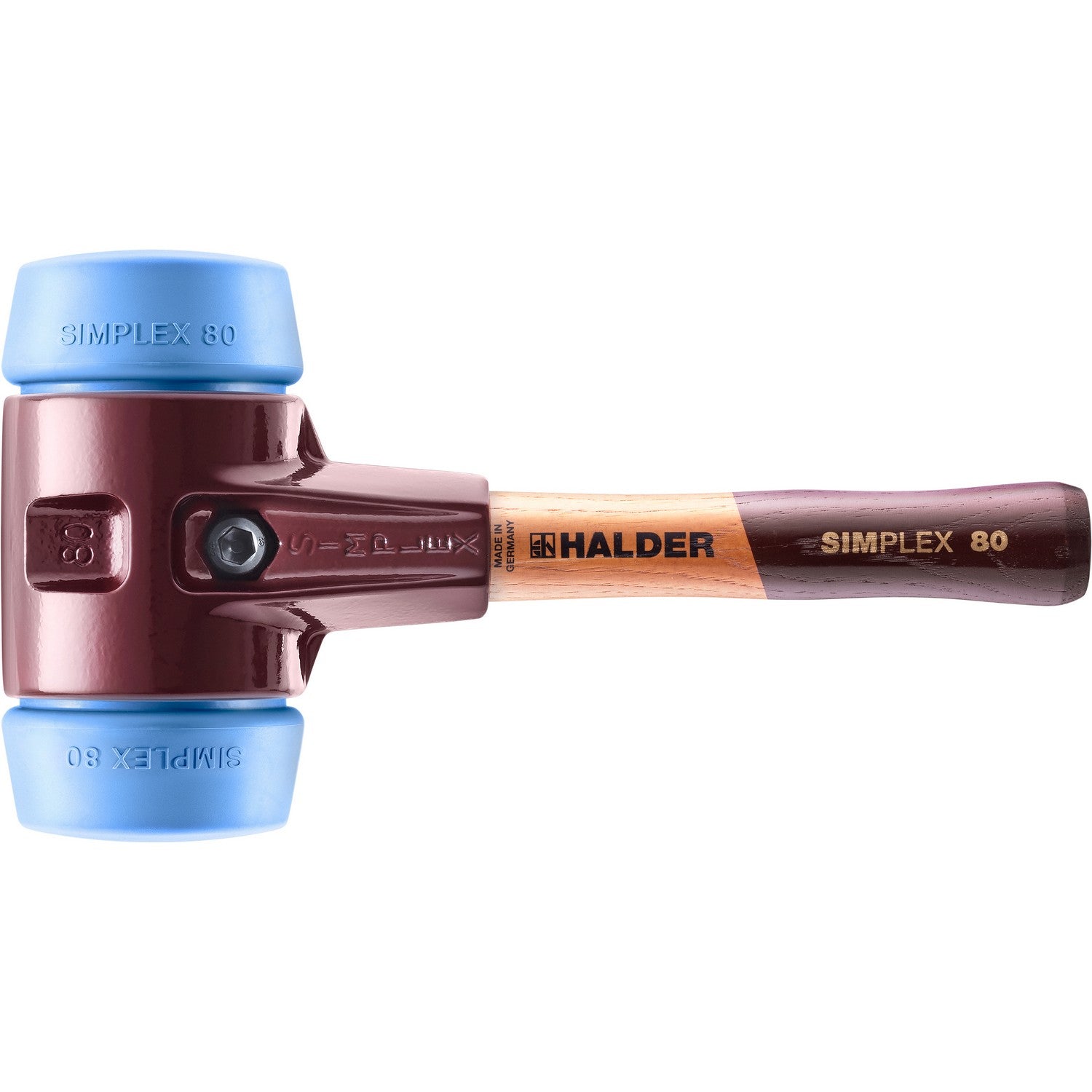 Halder 3001.082 Simplex Mallet with Soft Blue Rubber Inserts Cast Iron Housing and Wood Handle Short Handle