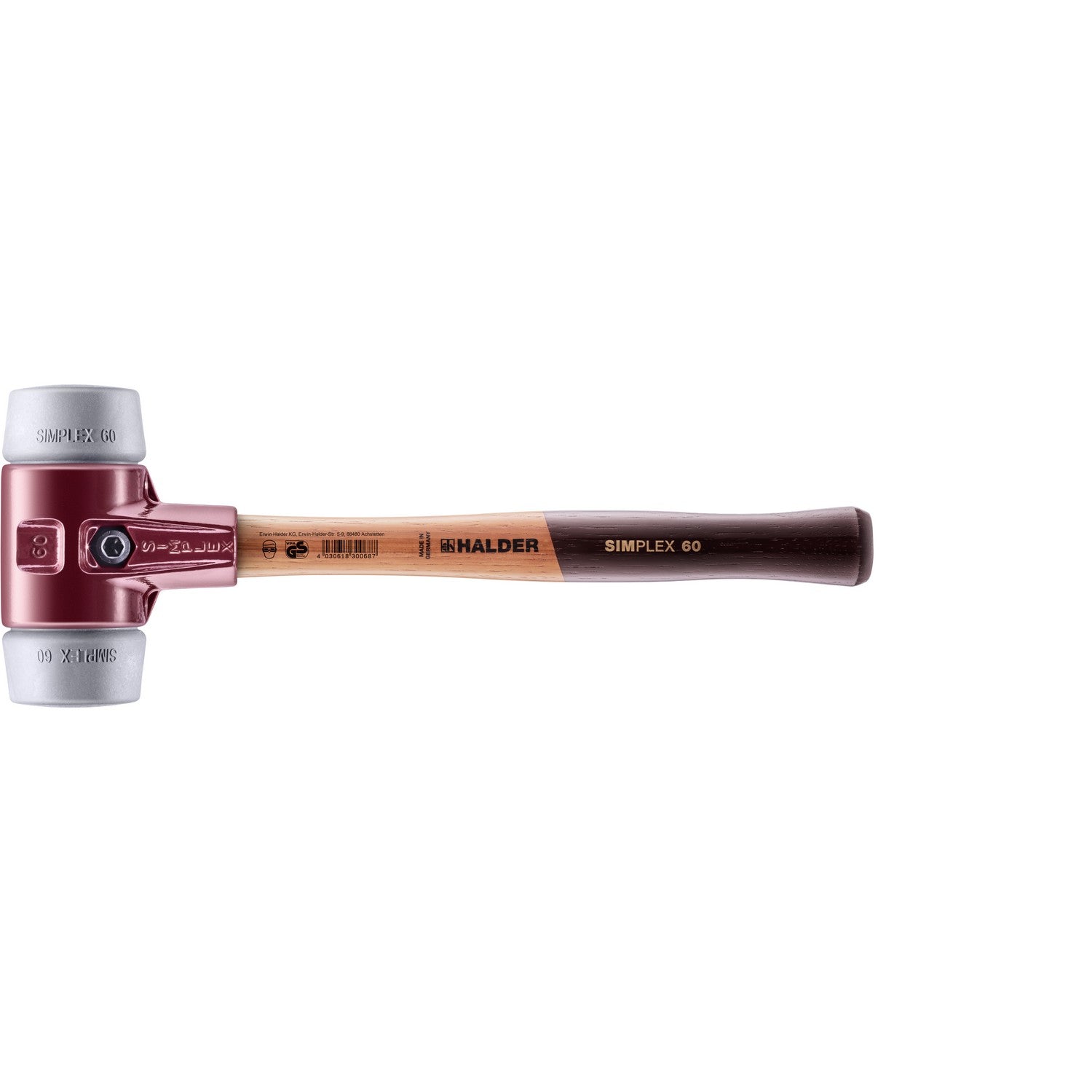 Halder 3003.060 Simplex Mallet with Grey Rubber Inserts, Non-Marring, Cast Iron Housing and Wood Handle