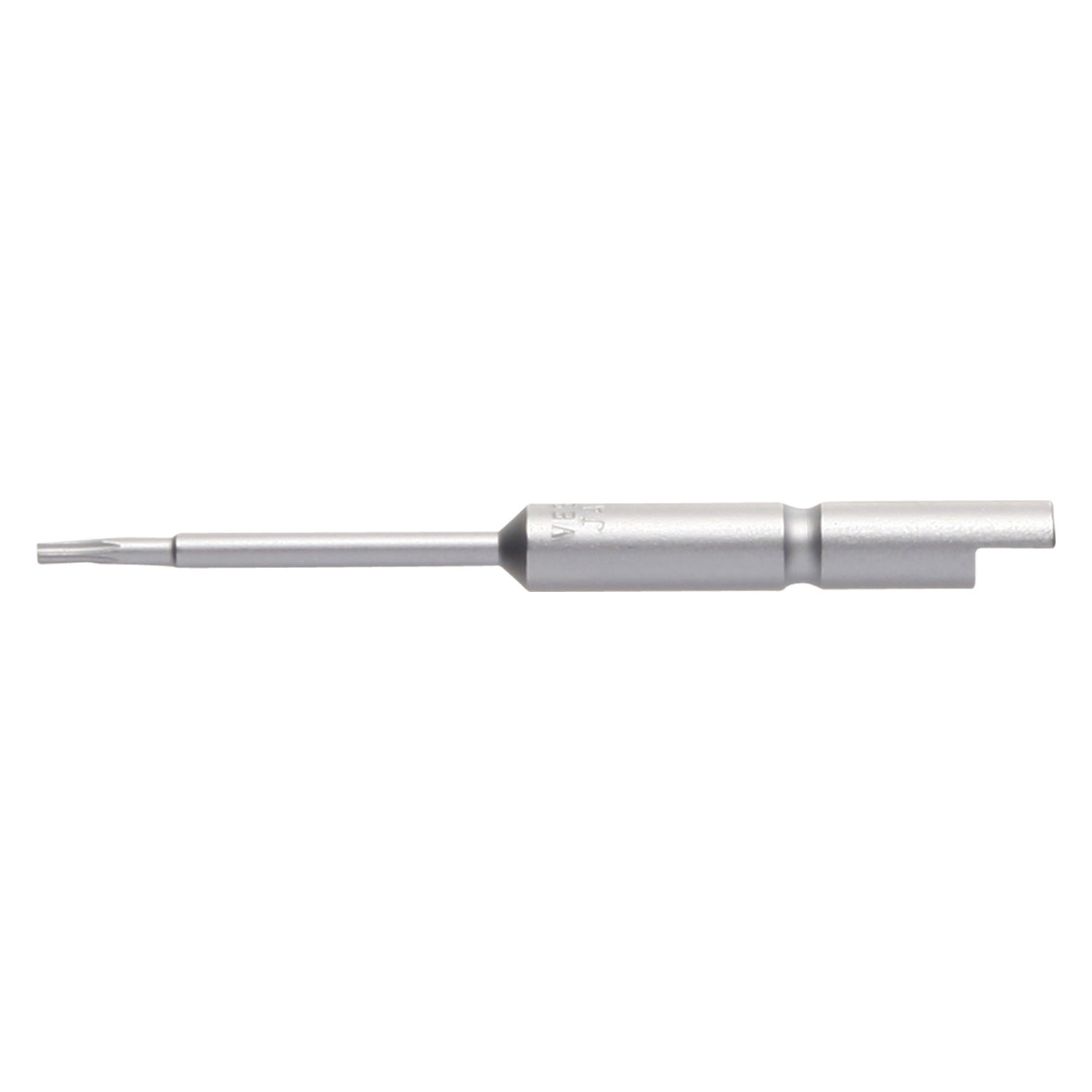 The PRECISION BIT Halfmoon-shank φ4mm, T3x44 mm is a specialized tool designed for precision tasks that involve T3 Torx screws. With its φ4mm halfmoon shank, this bit provides a secure and stable fit with precision tools, ensuring smooth torque transfer for accurate fastening. The T3 Torx tip is tailored for handling small T3 screws, making it perfect for delicate applications such as electronics repair, fine mechanical assembly, and detailed maintenance projects. Measuring 44mm in length, this precision bit allows users to easily reach confined or tight spaces, making it ideal for intricate work.