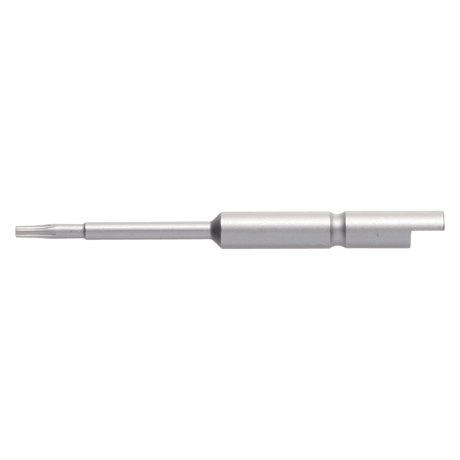 The PRECISION BIT Halfmoon-shank φ4mm, T5x44 mm is a high-performance tool specifically engineered for precision fastening tasks involving T5 Torx screws. With its φ4mm halfmoon shank, this bit provides a secure and stable connection with various precision tools, ensuring optimal torque transfer for accurate fastening. The T5 Torx tip is designed to fit T5 screws perfectly, making it ideal for applications such as electronics assembly, intricate mechanical work, and fine repair tasks. Measuring 44mm in length, this bit allows for easy access to tight and confined spaces, making it an excellent choice for detailed work where precision is crucial. Constructed from durable, high-quality materials, the bit offers exceptional wear resistance, ensuring long-lasting performance and reliability in both professional and DIY settings.