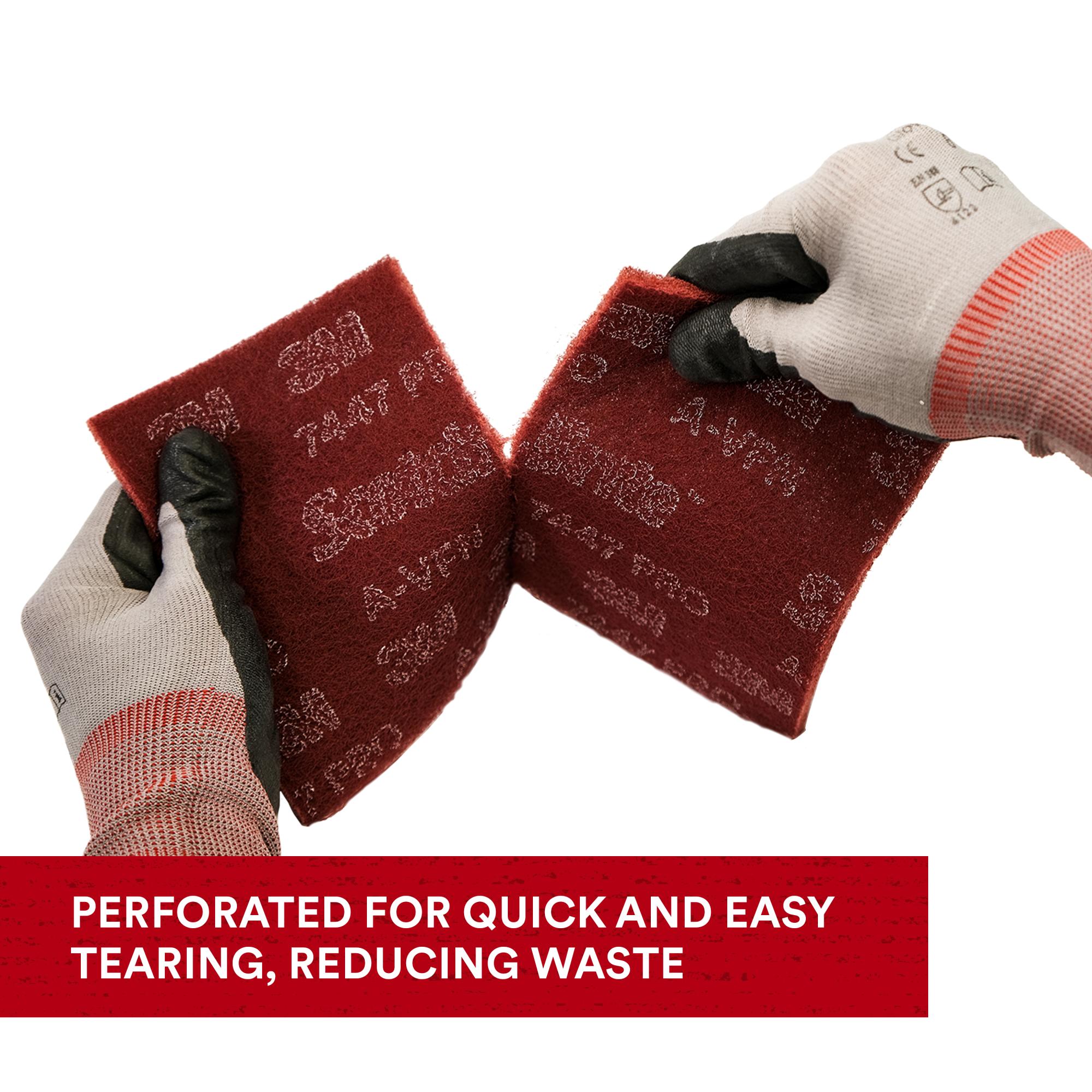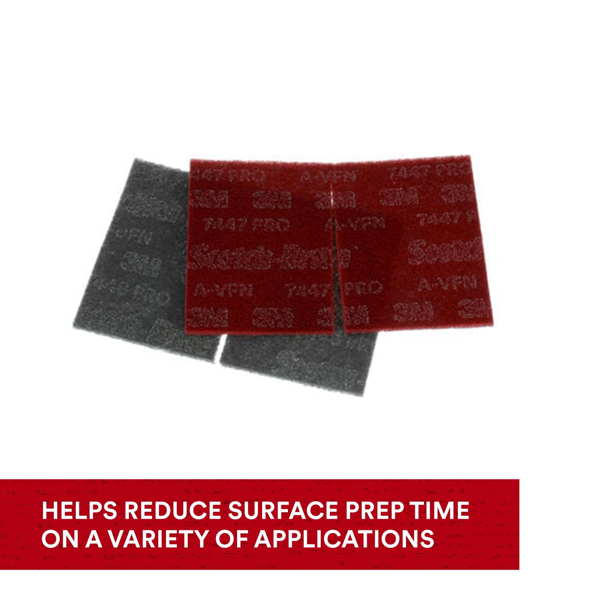 Scotch-Brite Hand Pad PRO features breakthrough fiber coating technology to cut faster and produce a more consistent scratch, reducing the time it takes to scuff, prep or finish parts. It's ideal for prepping surfaces for paint and primer, general scuffing and hand blending.Unlike fine steel wool, Scotch-Brite™ Hand Pad PRO will not rust after use or leave fine metal splinters. The durable open-web construction is load resistant, offers long life and consistent abrasive action for cleaning, finishing, and buffing with no need to adjust, turnover, or continue the same project with a new pad. The pad gets into corners and works detailed surfaces without altering the dimensions of the base material. Designed to run cleaner and longer than steel wool, this versatile pad is a useful item for any workshop.Our trial pack can help reduce surface prep time on a variety of applications including paint and primer preparation on airplanes, cars, trucks and other motor vehicles, scuff sanding of sealer coatings on cabinetry and furniture, refine finishes on stainless steel appliances, food processing, pharmaceutical and surgical equipment.