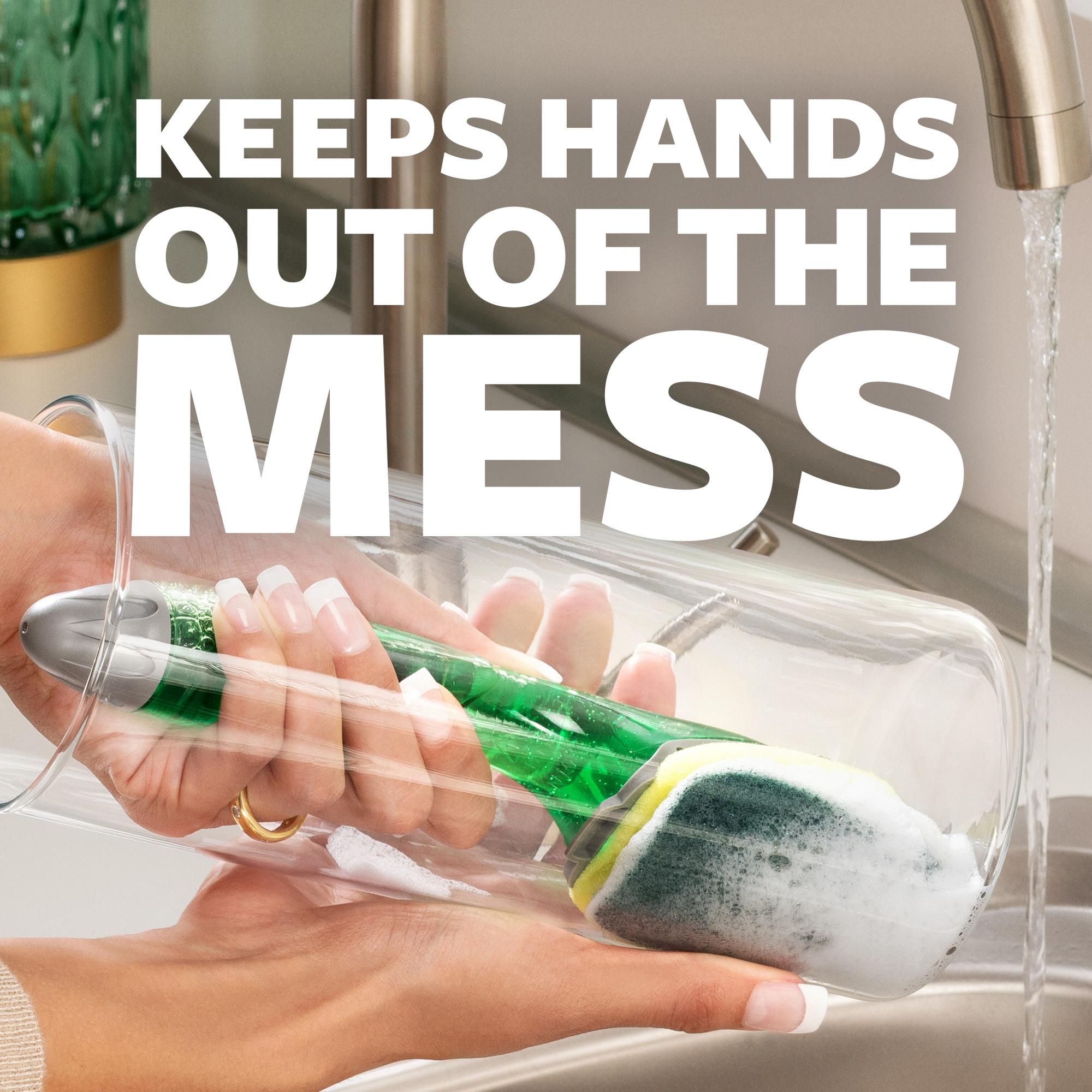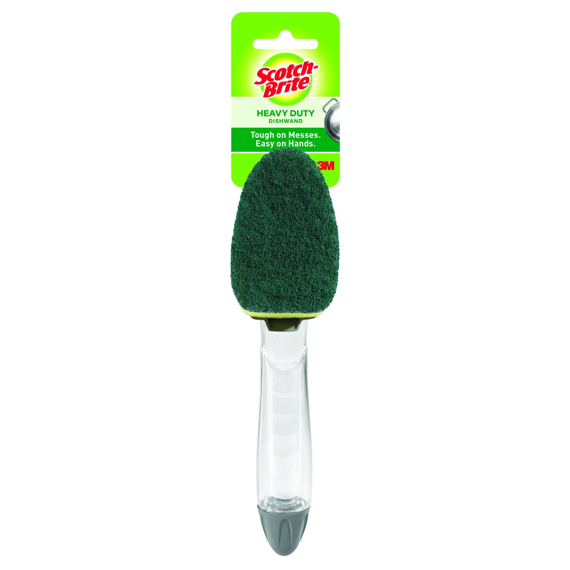 Scotch-Brite Soap Dispensing Dishwand keeps hands out of the mess. Fill it up with your favorite dish soap and effortlessly wipe away grease and grime. America's #1 Selling Dishwand.Experience a gratifying clean with the Scotch-Brite Heavy Duty Dishwand. These dishwands have 20x more scrubbing power compared to the leading temperature-reactive dishwand. This soap dispensing dishwand provides heavy duty power for tough messes while keeping your hands out of the mess. The dish scrub brush also features a built-in scraper to cut through stuck-on food messes. Use these tough heavy duty dishwands for cleaning grease, grime and dirt on safe-to-use surfaces, such as non-coated cookware, oven racks, concrete and tools. The scrubbing fibers of this dish scrubbing wand are made from 100% recycled content for a sustainable clean. To clean, simply put the dishwand head in the dishwasher top rack to sanitize and reuse. This scrubbing wand will work with all Scotch-Brite Dishwand Refills. Please note that some product packaging of the dish cleaner may look different from the images displayed. Stock up your cleaning supplies with Scotch-Brite Heavy Duty Dishwand and see why Scotch-Brite is the beloved cleaning brand for many households. Scotch-Brite gives you the power to clean up life’s everyday messes — in the kitchen and beyond. From everyday jobs to cleaning hacks, you'll see why Scotch-Brite Brand is America’s #1 selling dishwand brand.