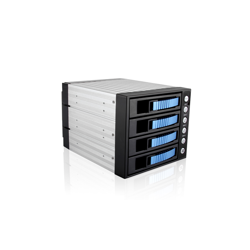 High level Raid and high availability storage in compact design, BPU-340SATA series adds extra storage and hot-swap capability to satisfy any application needs. Aluminum body and extra 80mm cooling fan subsystem complete a high end data storage server or workstation. High density multi-disk storage backplane that allows multiple four 3.5" SAS/SATA hard drives to be mounted into three standard 5.25" drive bays. BPU-340SATA supports RAID 1/0/1+0/5 configuration for high performance or redundancy data application. Aluminum construction provides best heat dissipation required for high performance SAS/SATA drives, is designed with excellent front to back vent airflow. Applications: Digital Audio Editing,Video Editing (SD or HD), Security System, SOHO SMEs With Limit HDD Tray and Data Protection or Disk-to-Disk Backup.