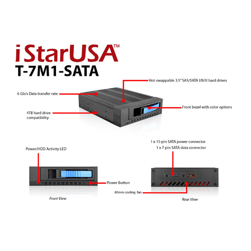 iStarUSA T-7M1-SATA-BPL 5.25" to 3.5" 2.5" SATA SAS 6 Gbps HDD SSD Hot-swap Rack