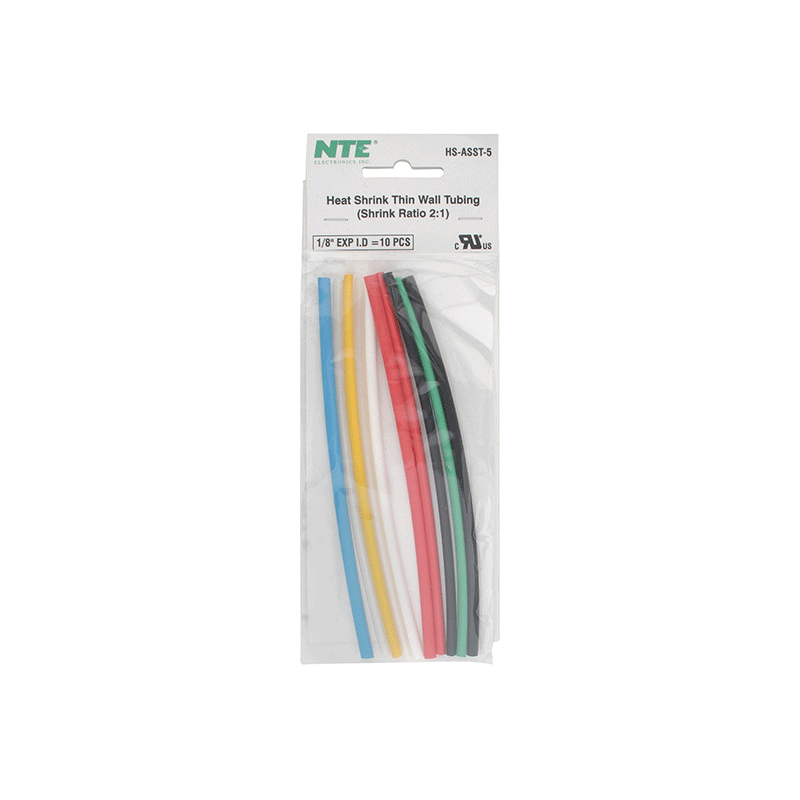 NTE Electronics HS-ASST-5 Heat Shrink Assortment 6 IN 1/8 Inch (10 pieces)