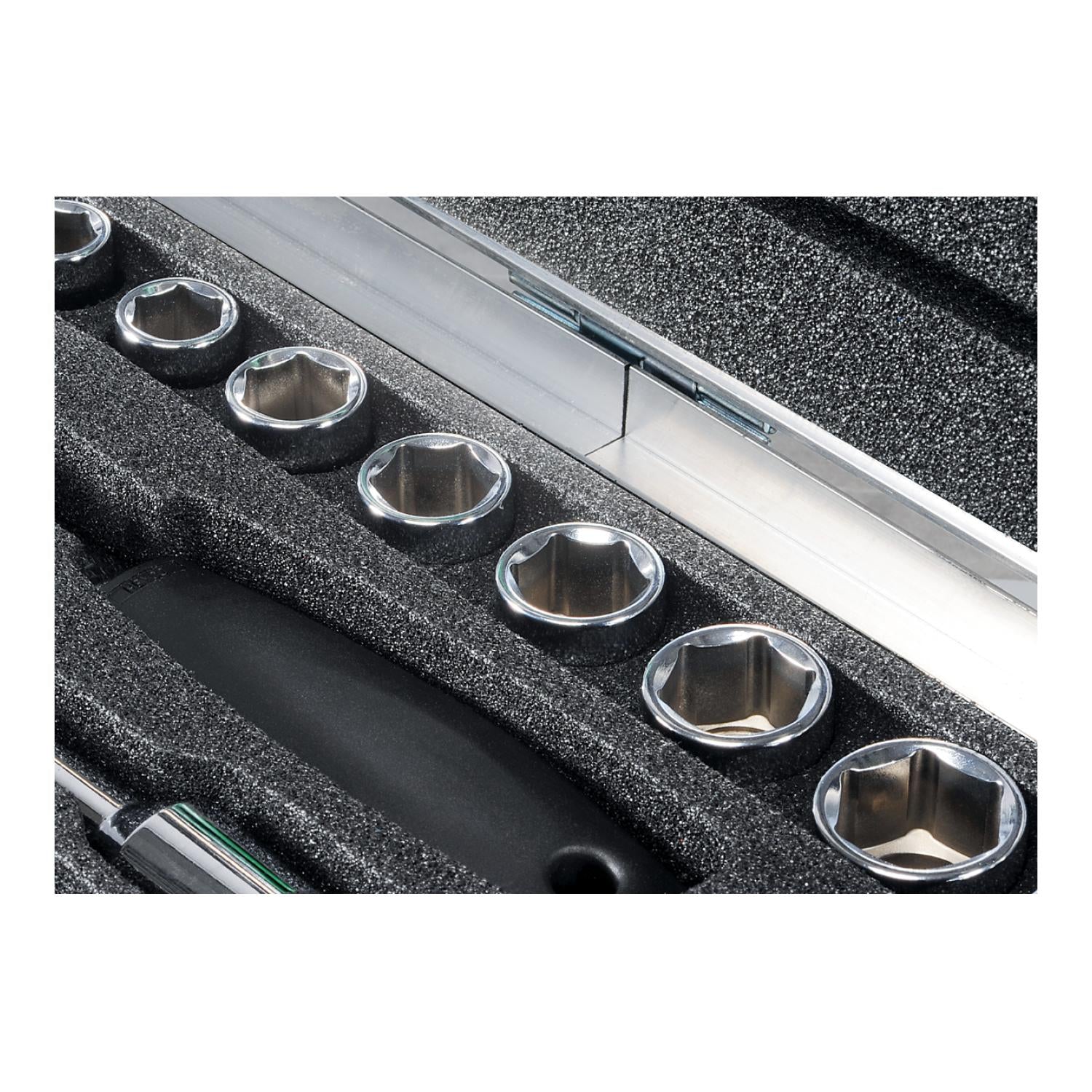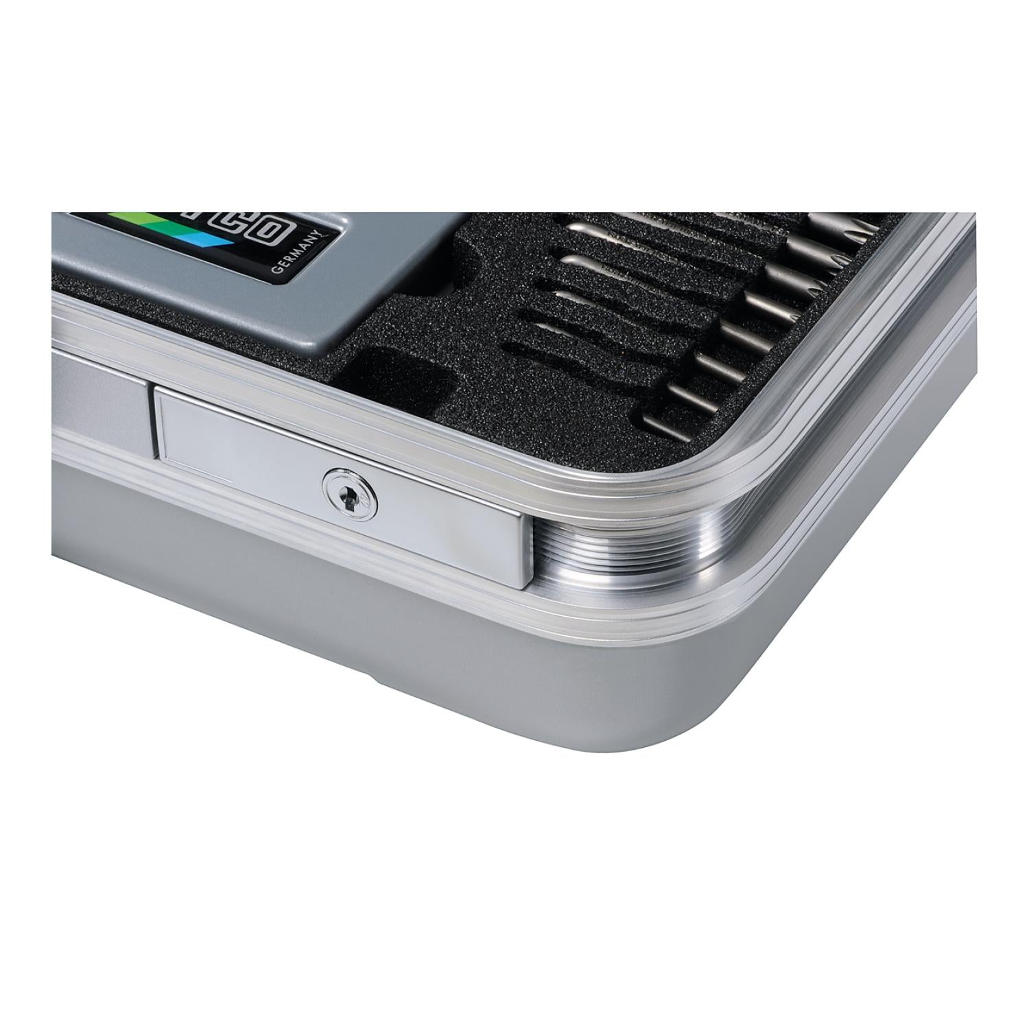 - A tip cylinder lock secures stored tools and transports them through high grade foam inlay surrounded by ABS