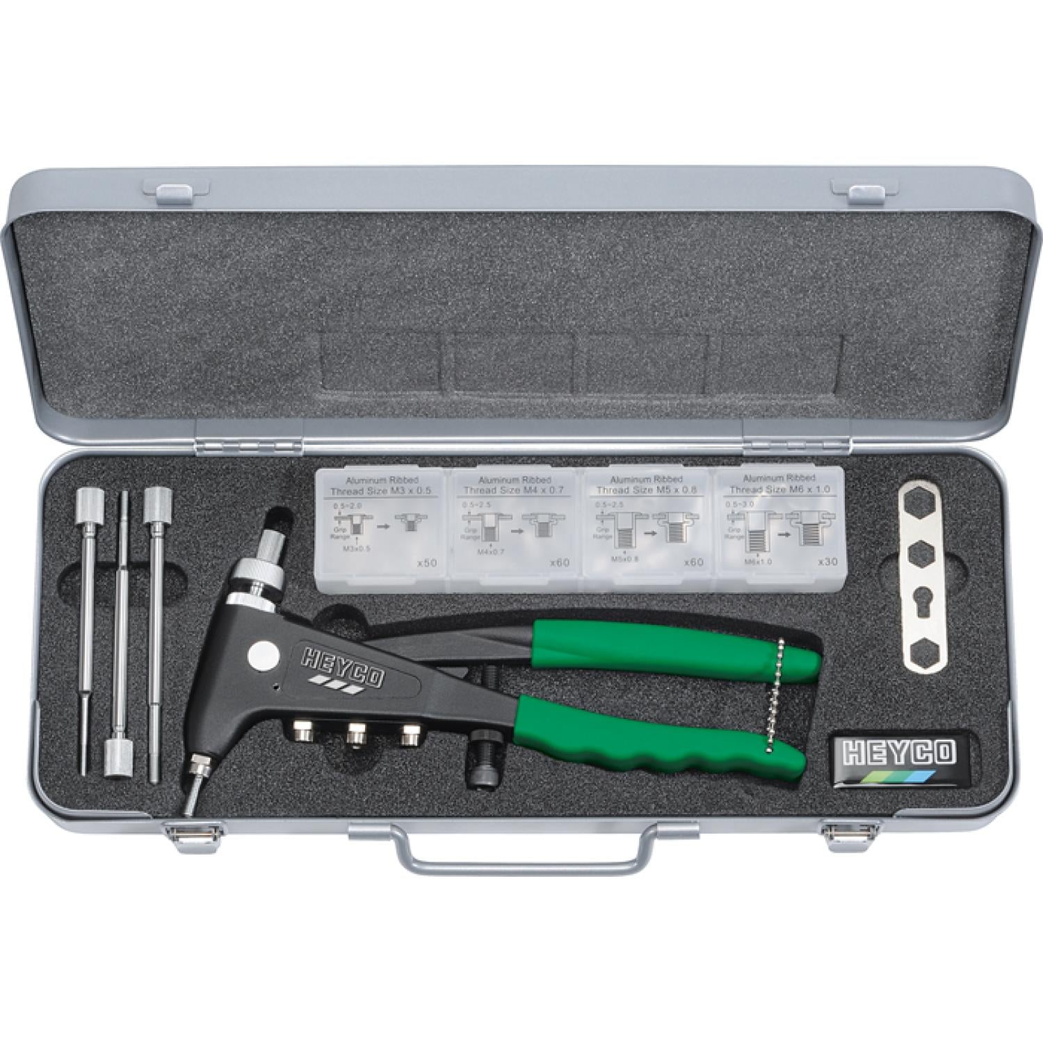Heyco 01261000100 Hand Rivet Nut Tool Kit in metal case, Length-250mm