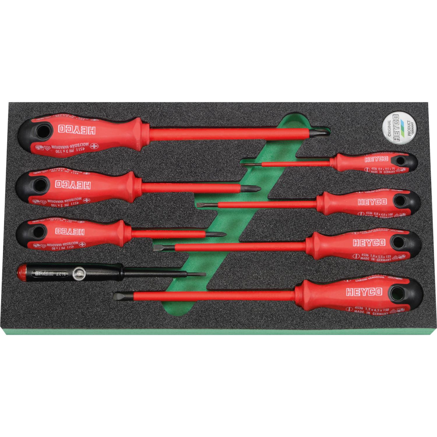 Heyco 00991003033 Insulated VDE Phillips/Slotted Screwdriver Set, 8 Pieces