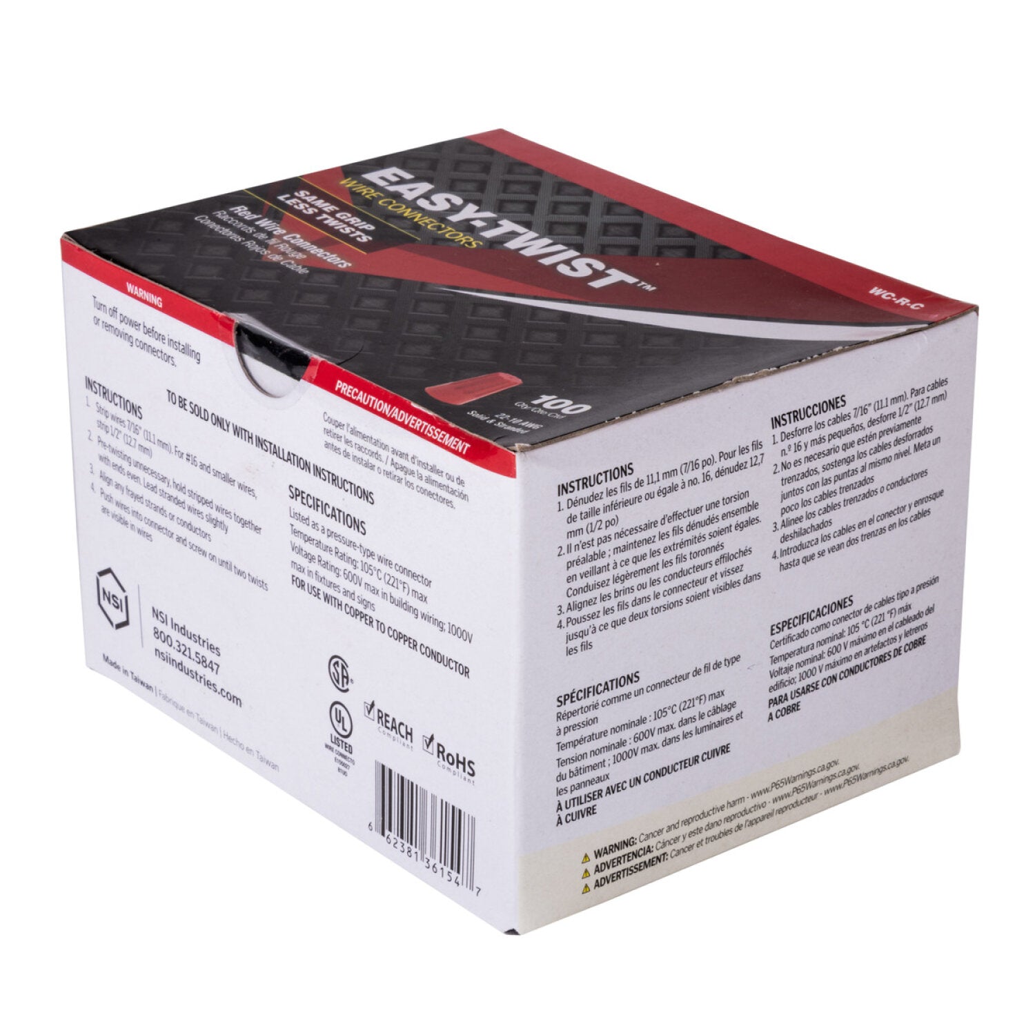 NSI WC-R-C Standard Red Wire Connector with Quick-Grip Spring, 100 Carton