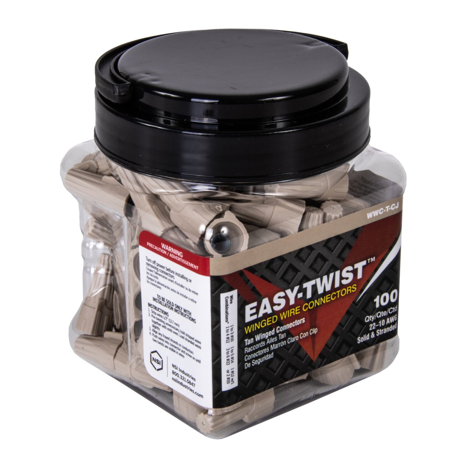 NSI WWC-T-CJ Tan Winged Wire Connector with Quick-Grip Spring, 100 Small Jar