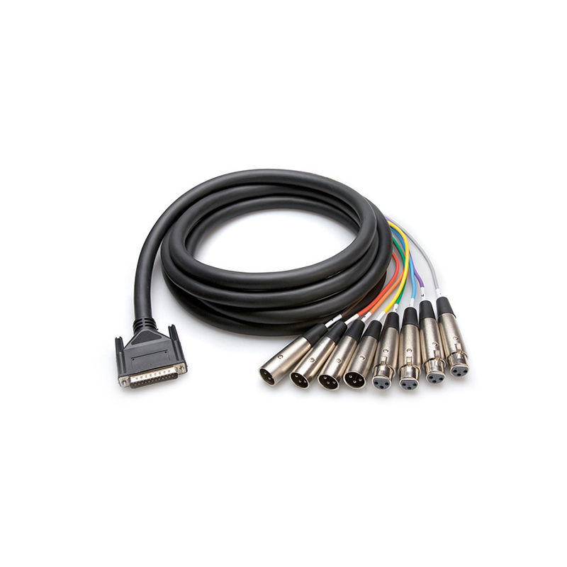 This snake is designed to connect digital audio gear with DB25 sockets to digital audio gear with XLR connectors. AES-803T and AES-805T are compatible with Digidesign and Tascam mixing consoles. AES-805Y is compatible with Apogee, Mackie, TC Electronic, and Yamaha mixing consoles. Features include: • Molded housings with heavy-duty strain relief for rugged reliability • Oxygen-Free Copper (OFC) conductors for enhanced signal clarity • OFC spiral shields for effective EMI and RFI rejection and flexibility