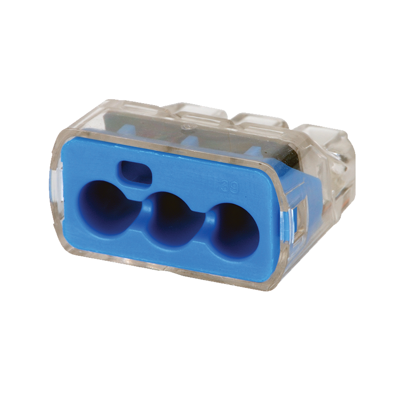 Ideal 30-1039 In-Sure Push-In Wire Connector, Model 39, 3-Port Blue, 50/box