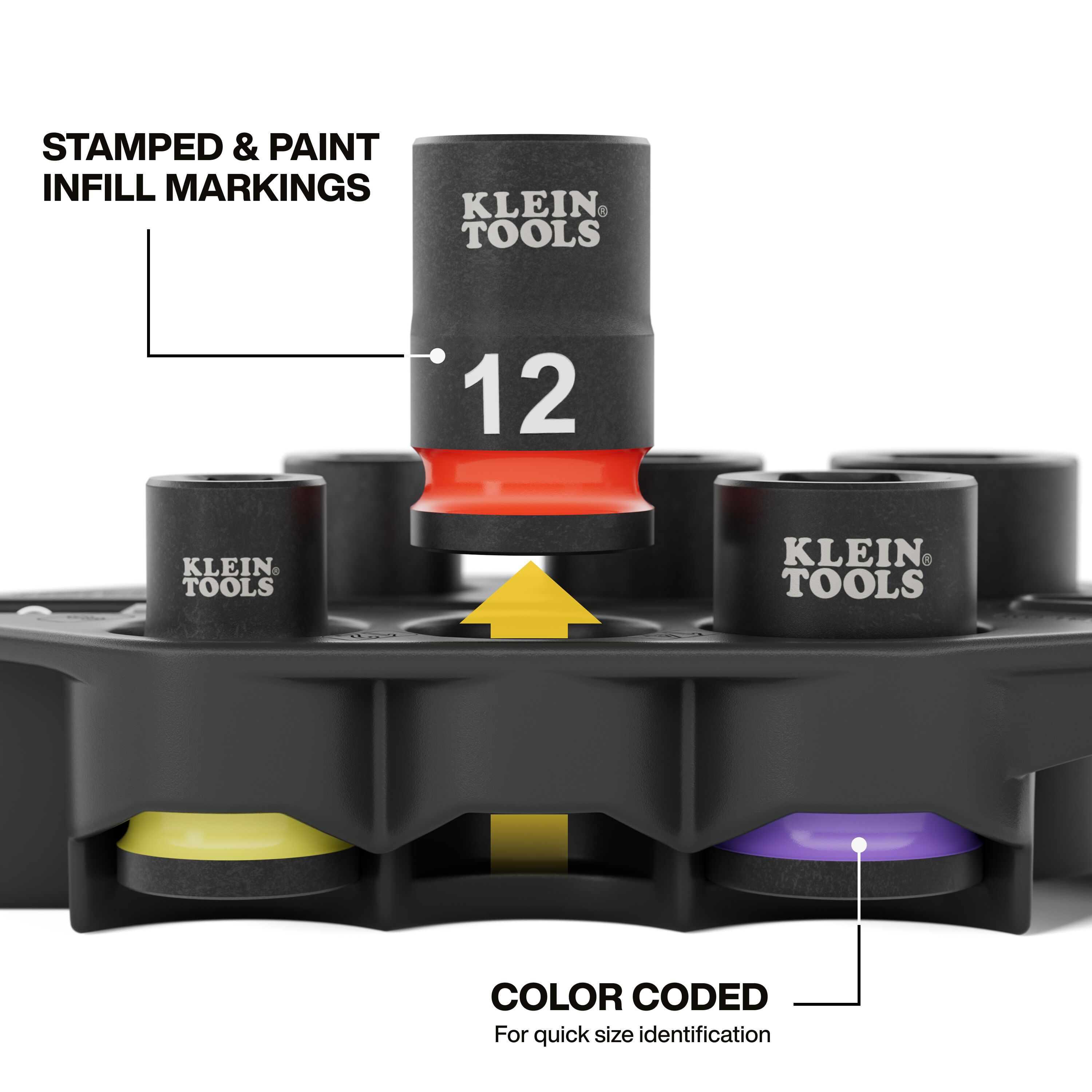 - Long lasting, industry-standard color-coded painted rings and bold stamped size and high contrast paint infill size markings to quickly identify socket sizes