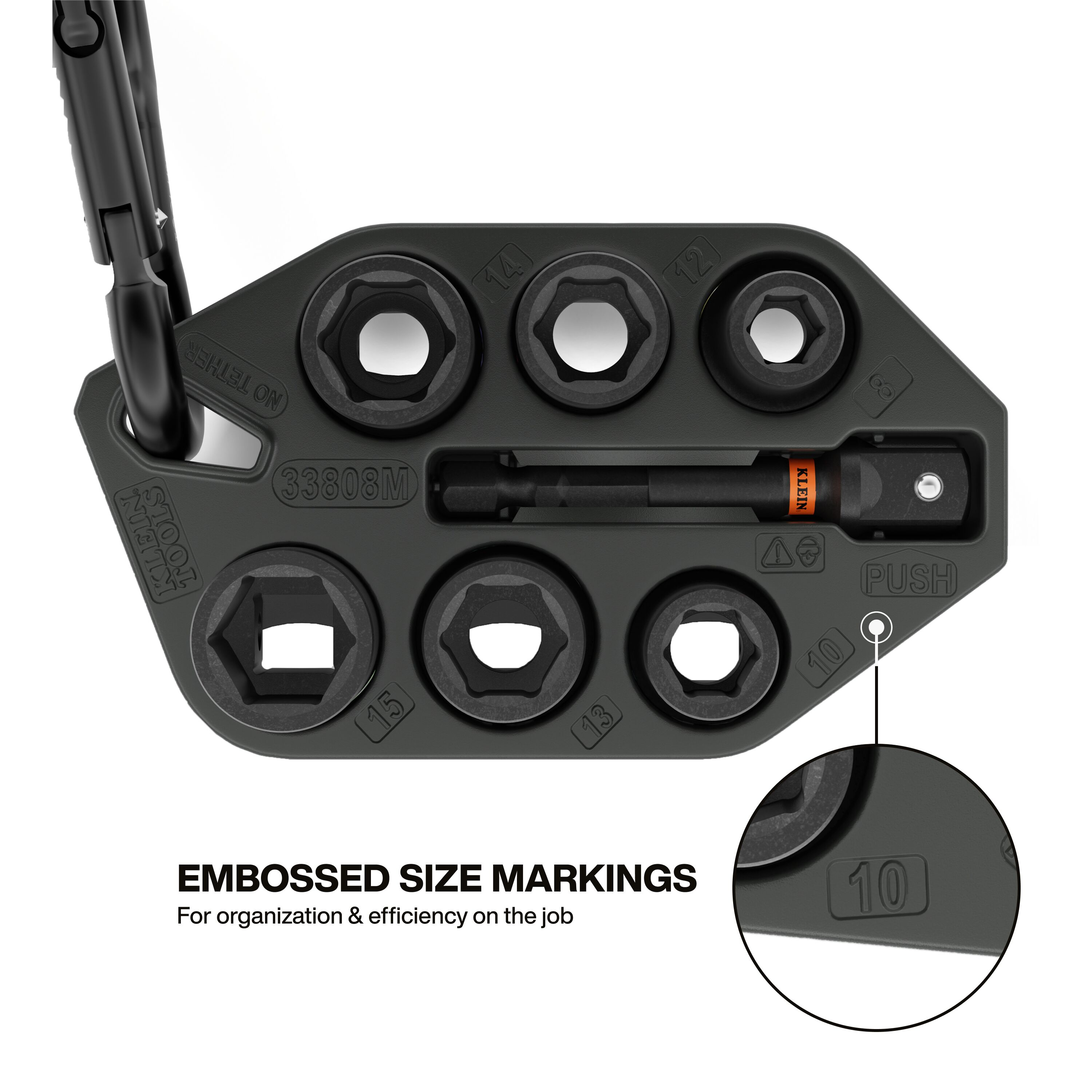 - Convenient carabiner attachment lets you secure the socket sleeve to backpacks, tool bags, or belts for instant access and improved job site productivity