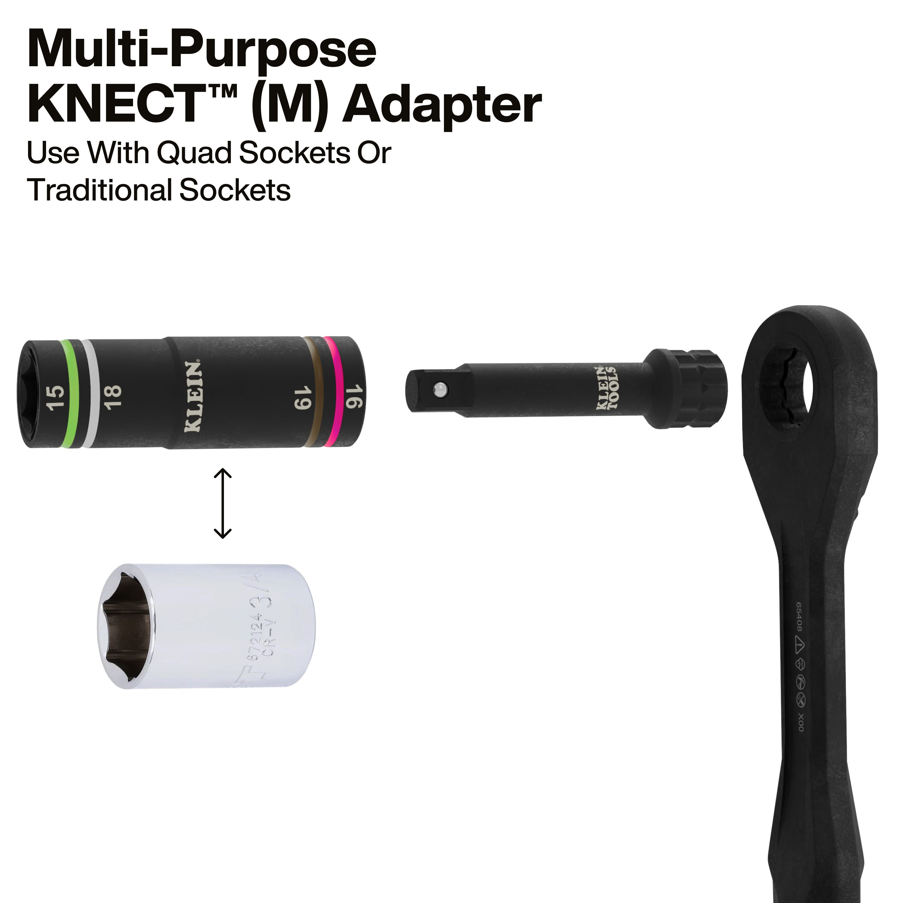 - Multi-purpose adapter works with KNECT™ (M) system's pass-through socket wrench or screwdriver to adapt to any driving situation