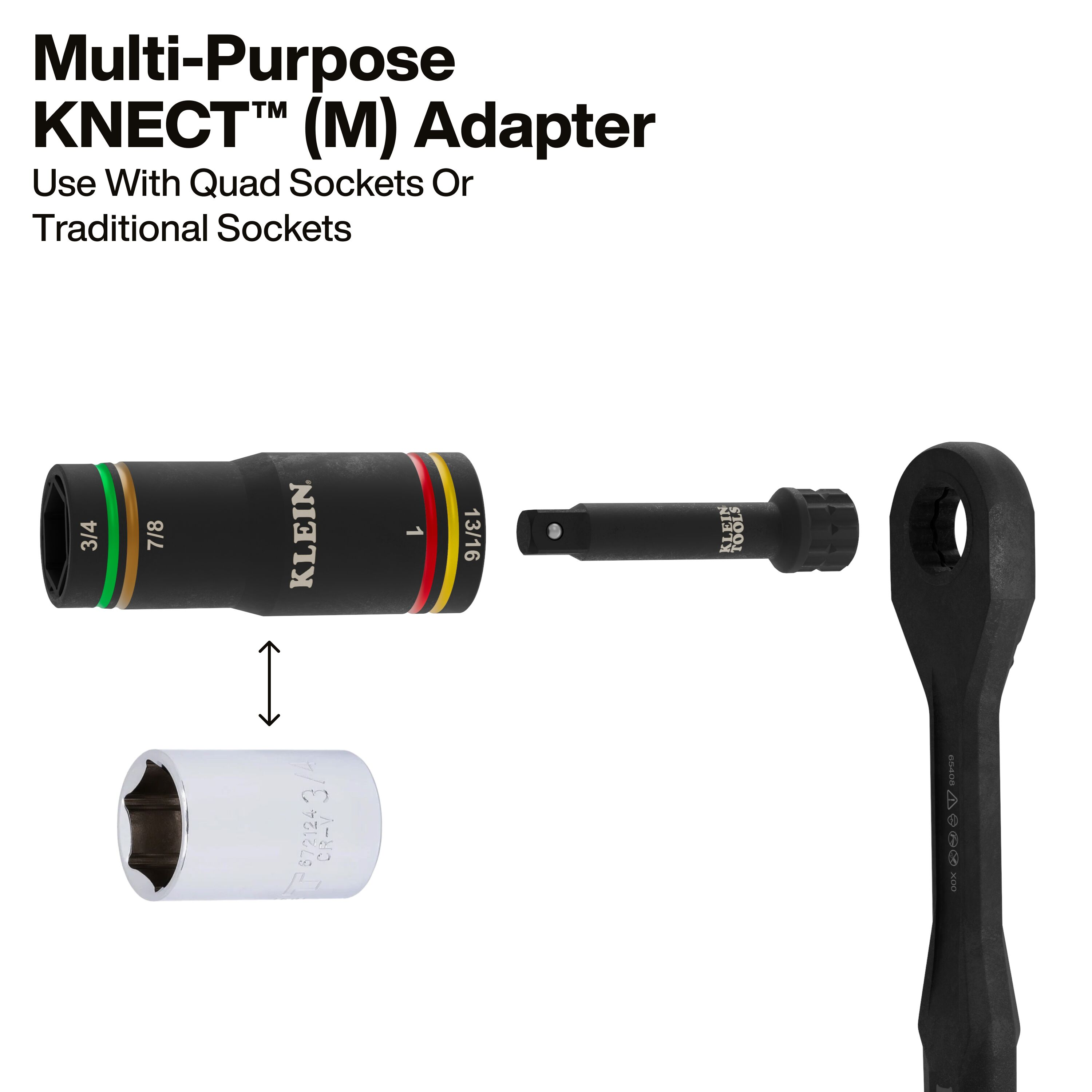 - Multi-purpose adapter works with KNECT™ (M) system's pass-through socket wrench or screwdriver to adapt to any driving situation