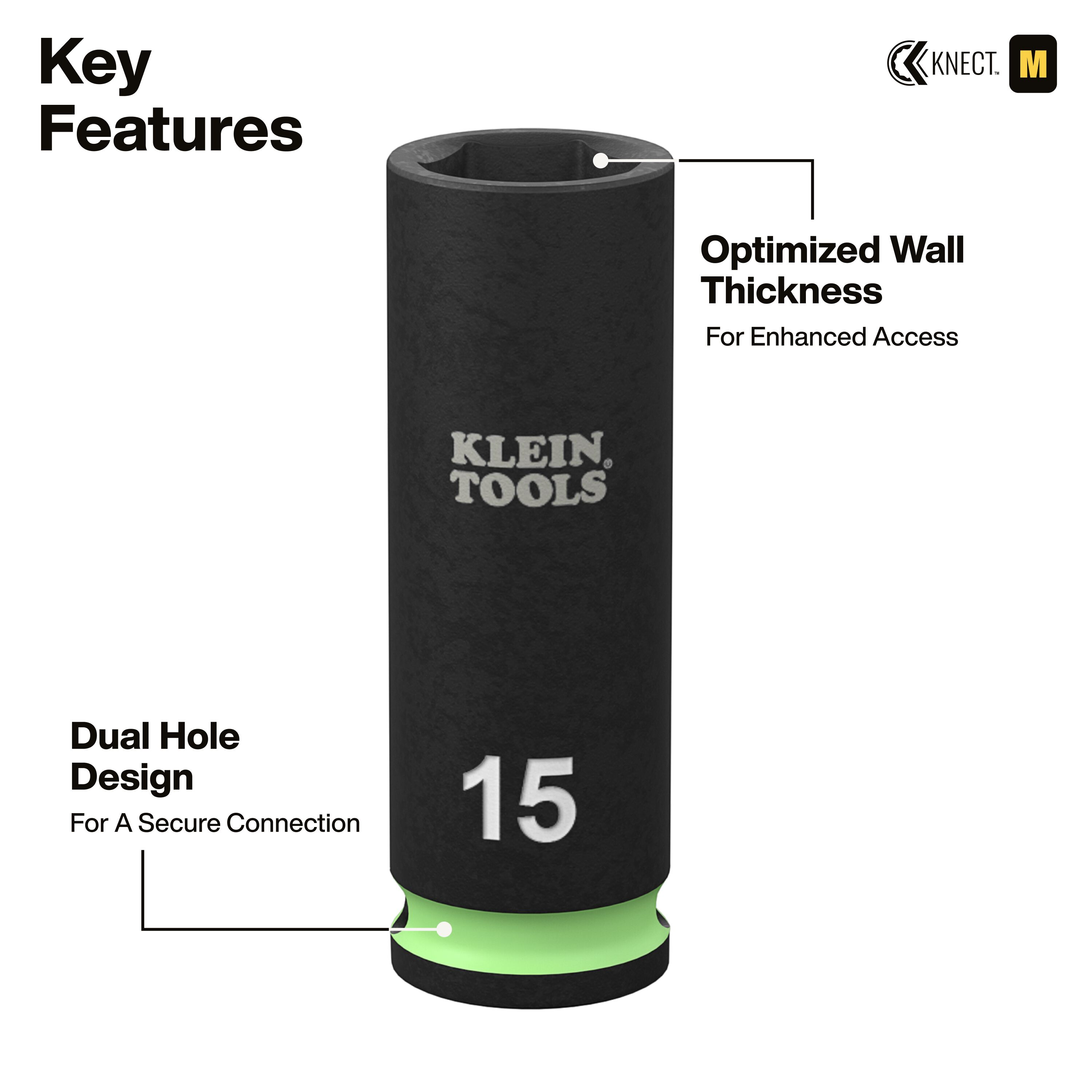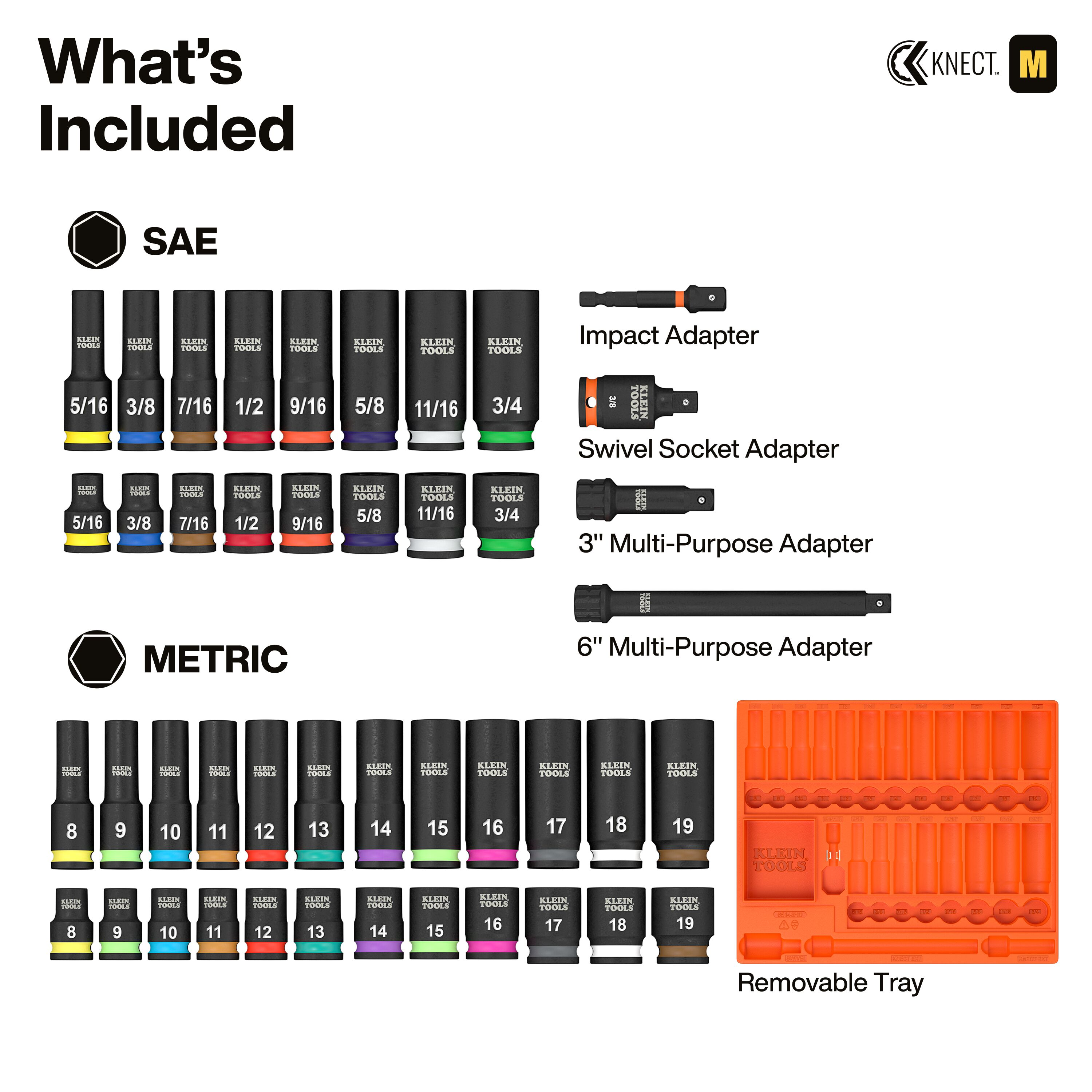 Klein Tools 65148HD KNECT 3/8" Deep and Shallow Impact Socket Set, SAE / Metric, 44 Pc.