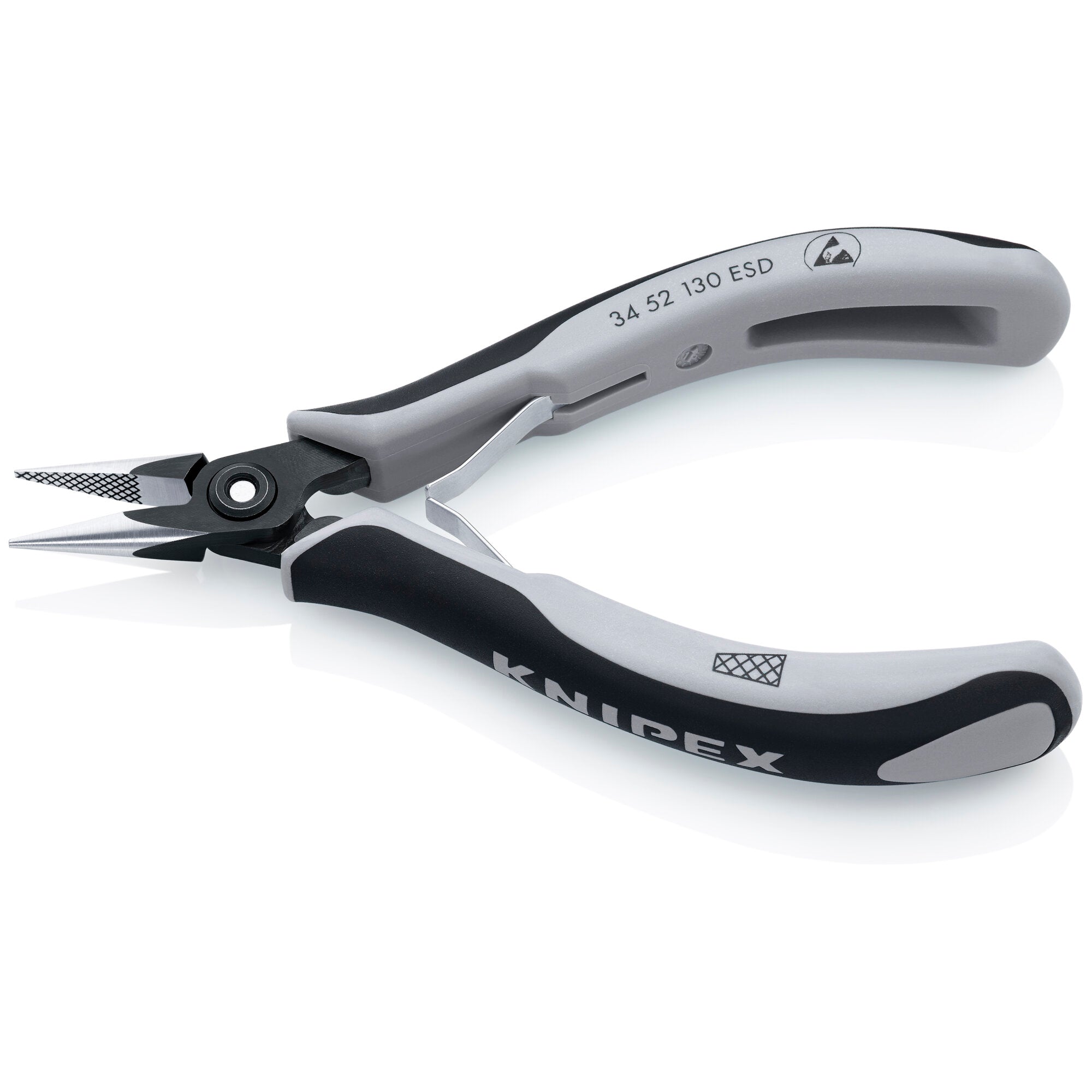 Knipex 34 52 130 ESD 5 1/4" Electronics Pliers-Half Round Tips, Cross-Hatched, ESD Handles