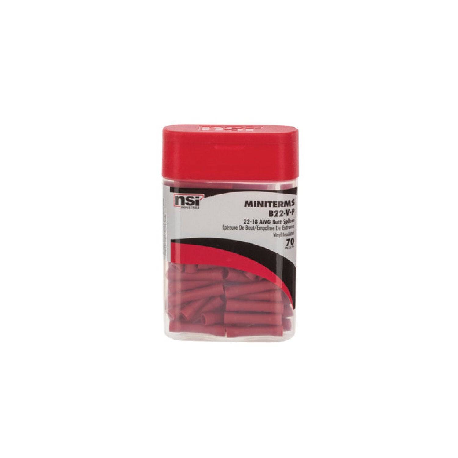 NSI B22-V-P 22-18 AWG Vinyl Butt Splice, 70 Pcs PRO Pack