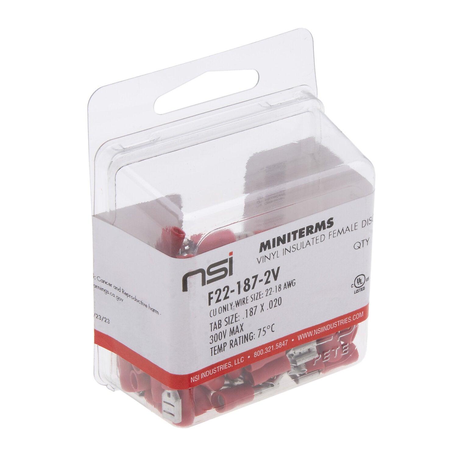 NSI F22-187-2V 22-18 Awg Vinyl Insulated Female Disconnect .187X.020 Tab 100 Per Pack
