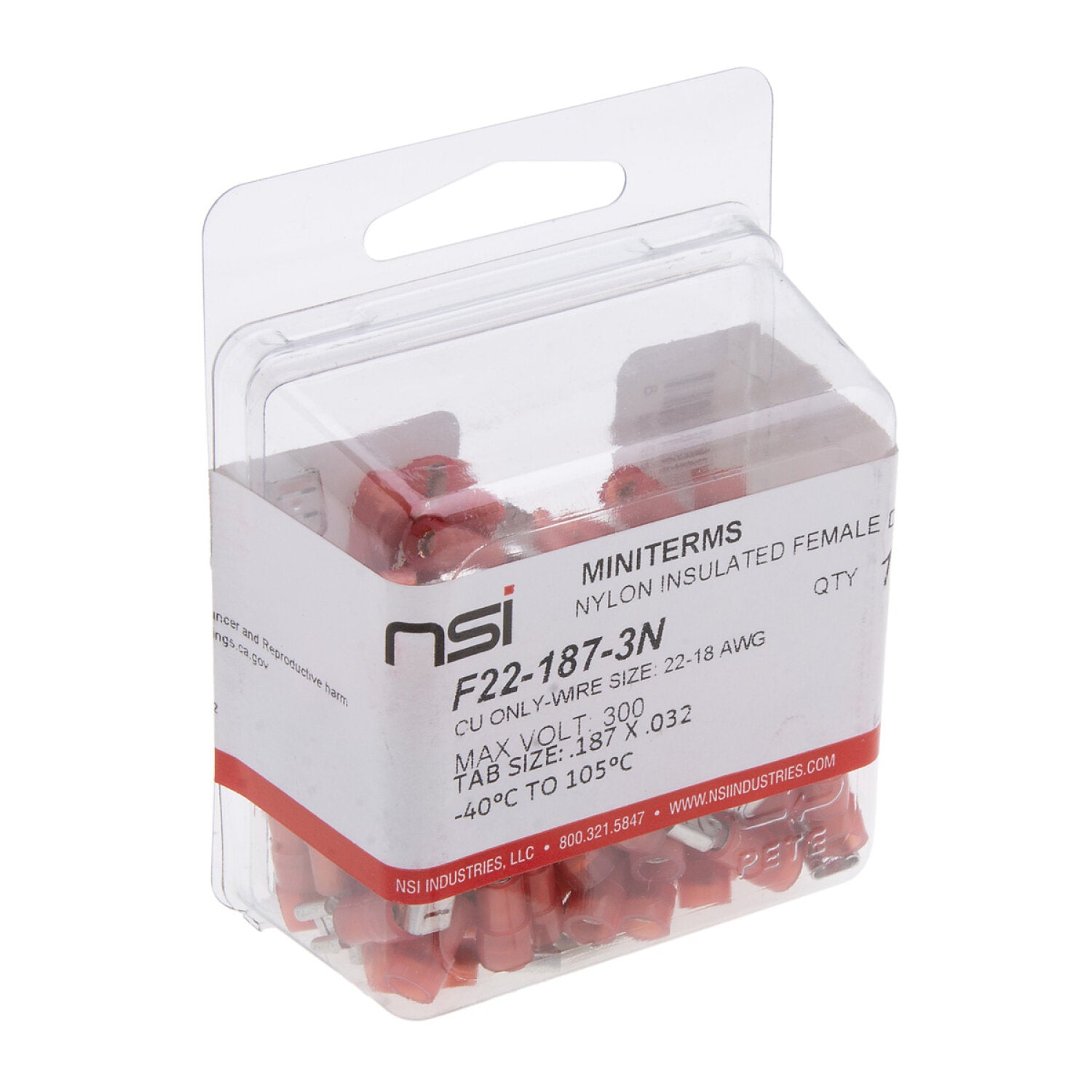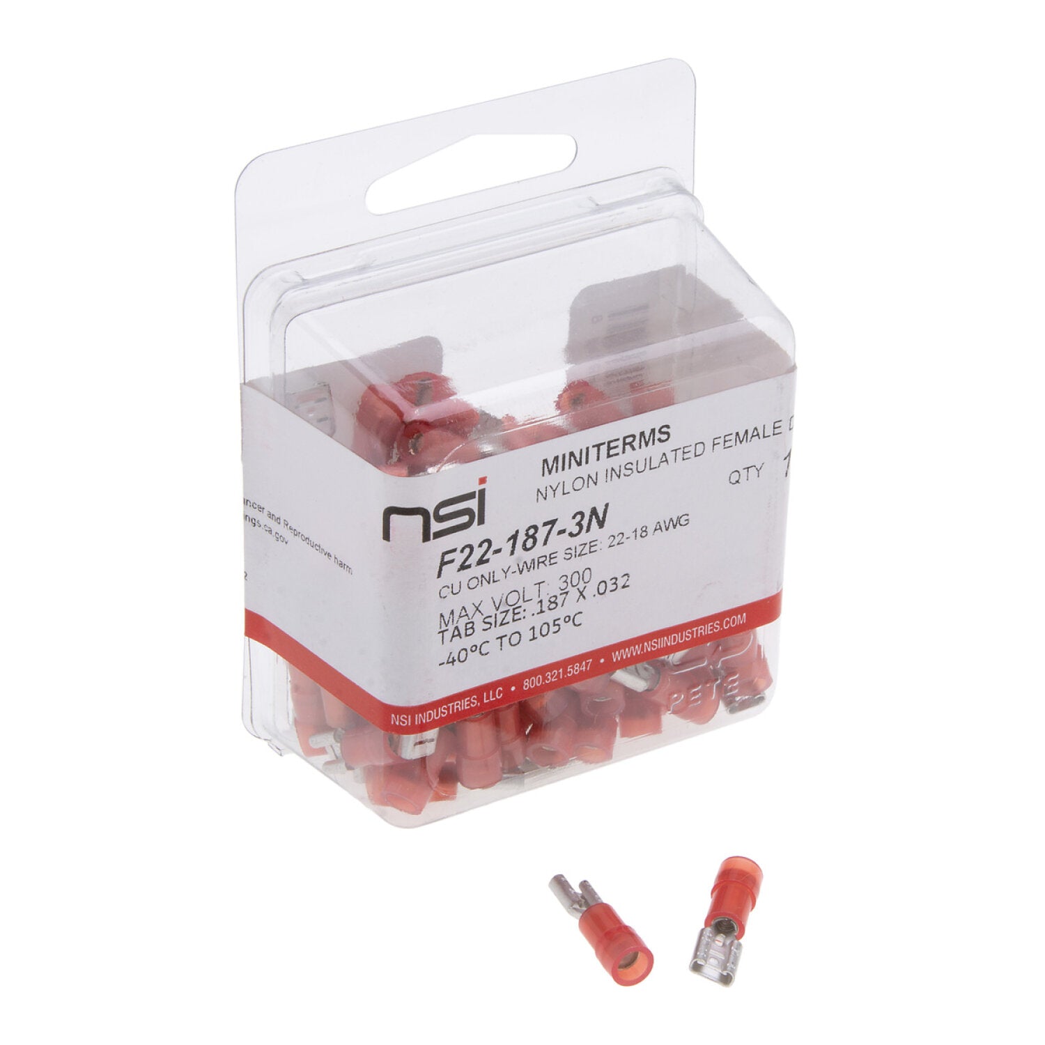 NSI F22-187-3N 22-18 Awg Nylon Insulated Female Disconnect .187X.032 Tab 100 Per Pack