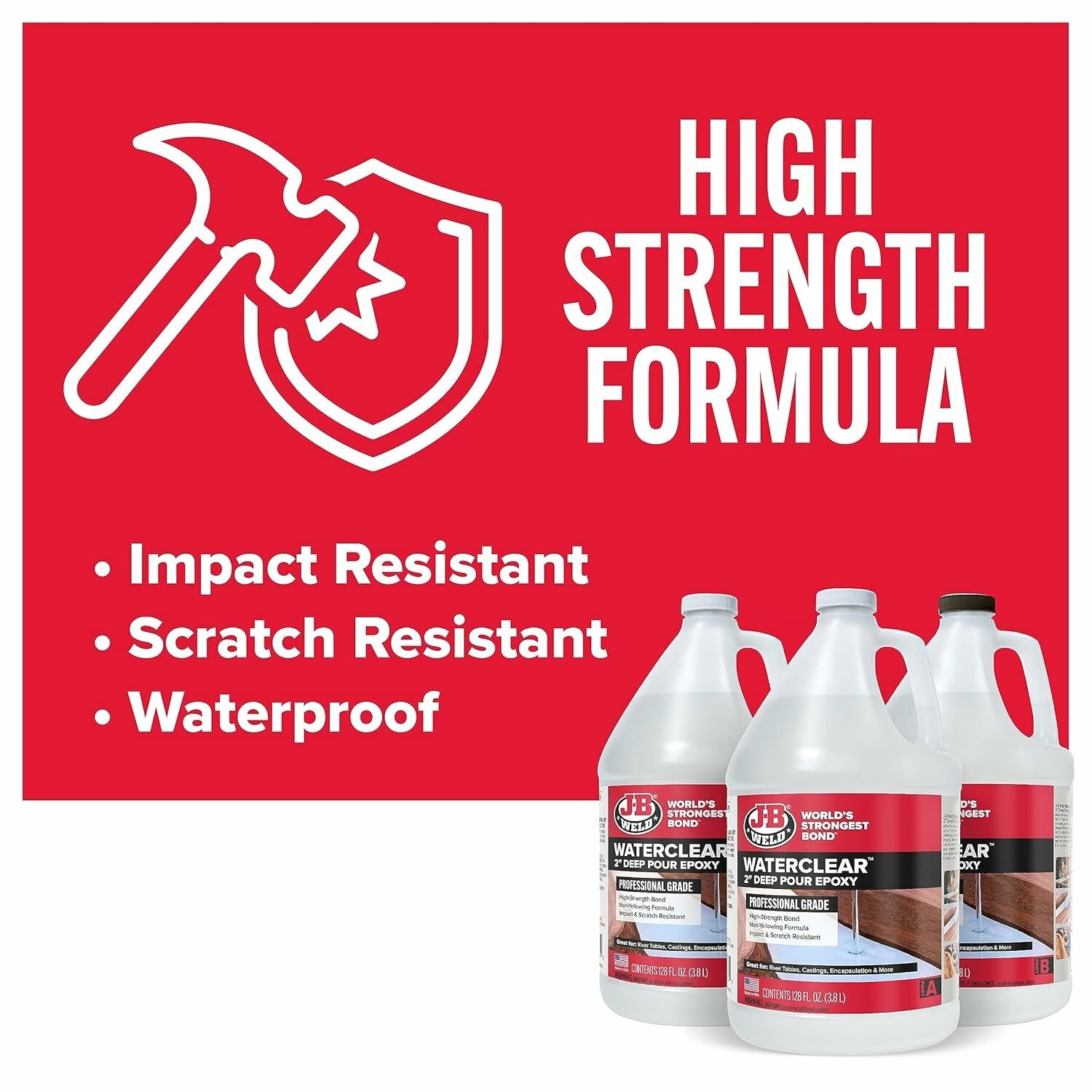 • WaterClear 2" Deep Pour Epoxy allows for deep pours up to 2" and resists yellowing, scratching, and impact