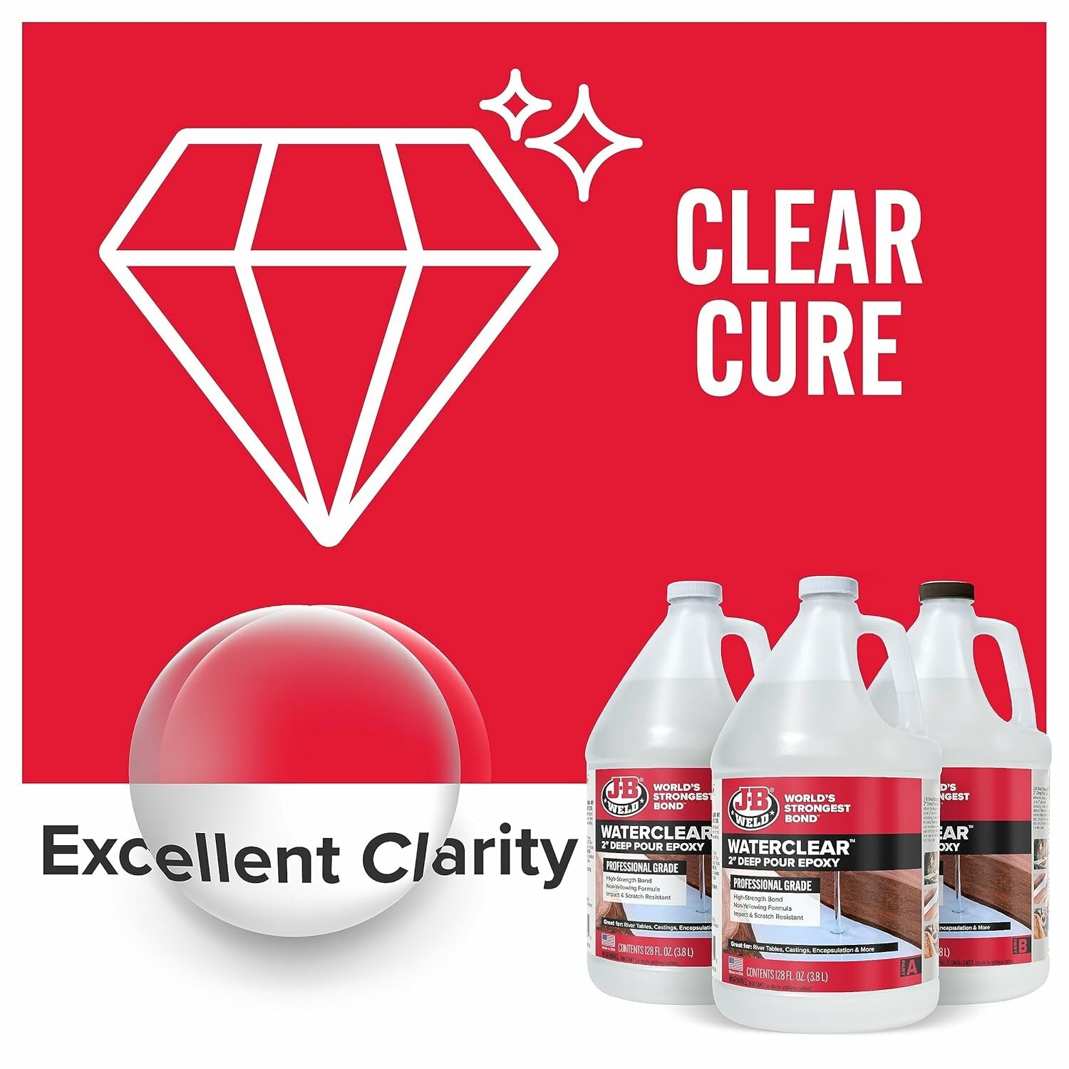 J-B Weld 42384 WaterClear Pro Grade 2" Deep Pour Epoxy, 384 fl oz.