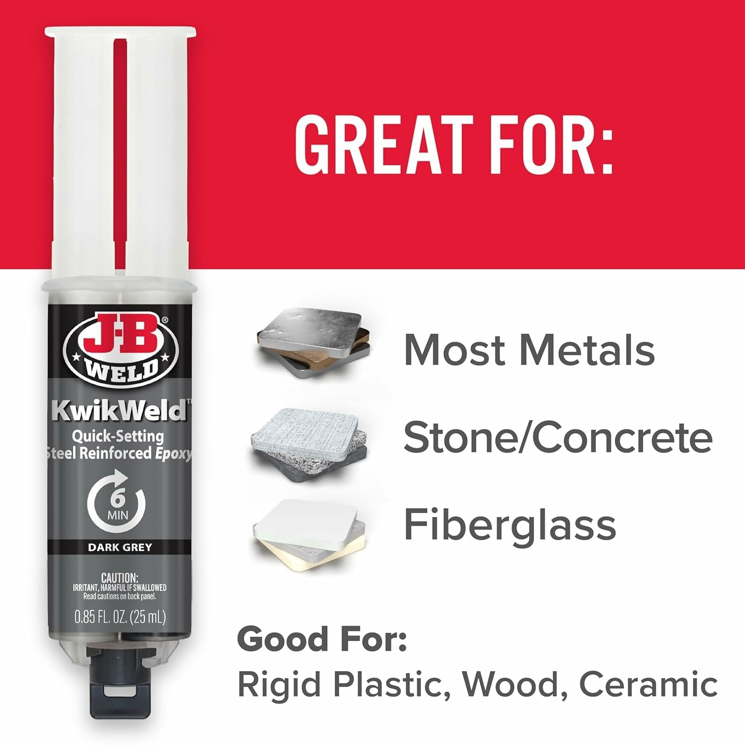 J-B Weld 50176 KwikWeld Steel Reinforced Epoxy Syringe, 25 mL