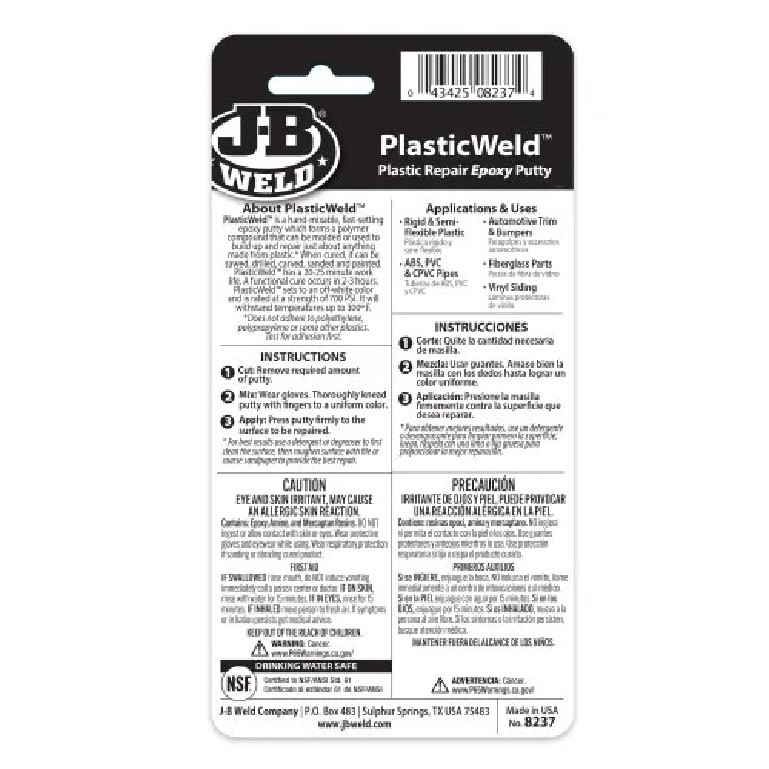 J-B Weld 8237 PlasticWeld Epoxy Putty, 2 oz.