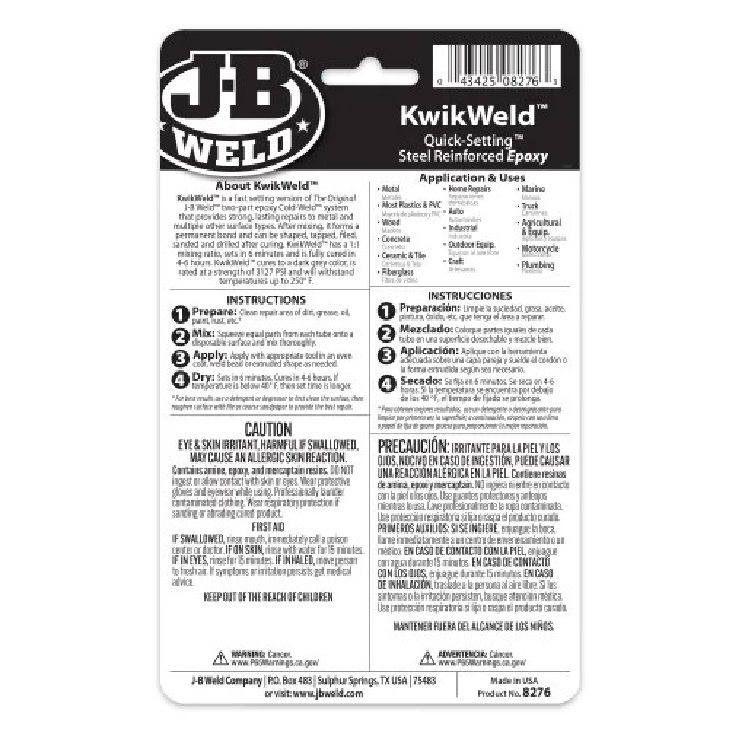 J-B Weld 8276 KwikWeld Twin Tube Steel Reinforced Epoxy & Hardener, 2 oz.