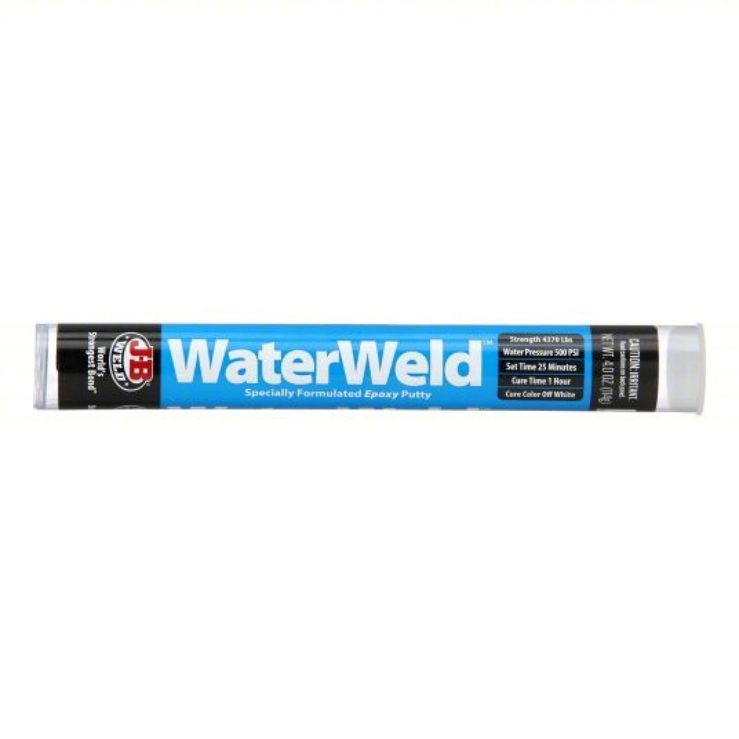- WaterWeld cures to an off-white color, is rated at a strength of 4370 PSI and will withstand water pressure up to 500 PSI and temperatures up to 250°F