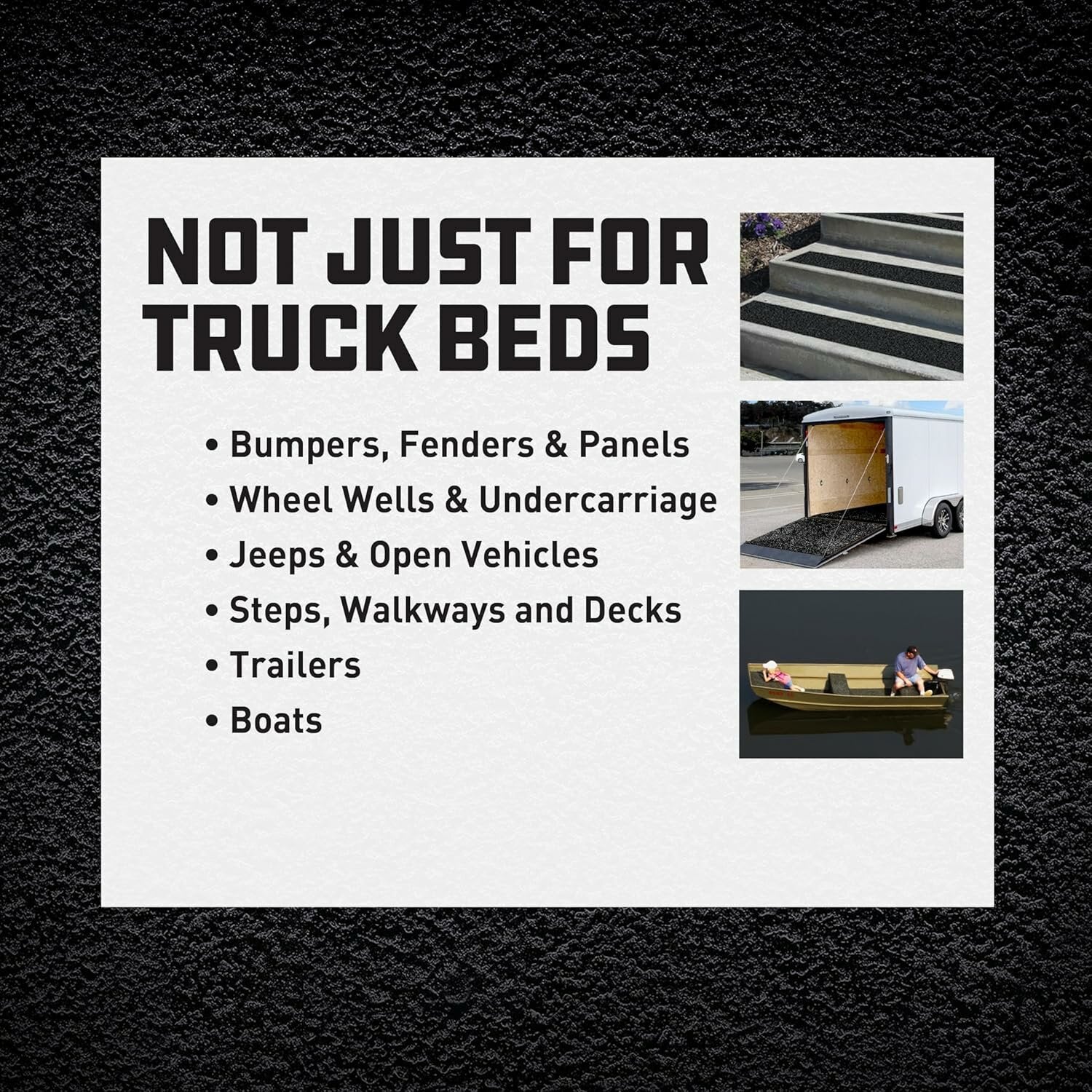 For truck beds under 6 feet or smaller projects, Herculiner comes in quart size. Quart size is great for application to smaller areas, such as walkways or steps, and covers 15 square feet with two coats.