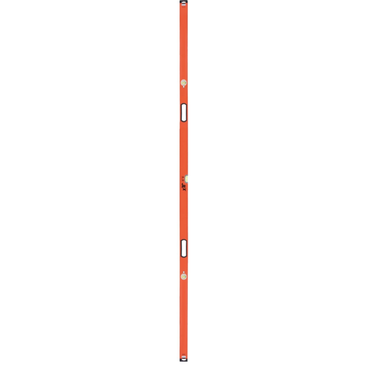 Johnson crafted the JLX series of products to meet the demands and exceed the expectations of professionals, and this 96" heavy duty aluminum box level is no exception. It has the accuracy and durability your jobsite demands, while also being exceptionally user-friendly. Its machined gauging edge ensures accuracy of 0.029° or 0.5mm/m in all positions, and that accuracy is backed up by a lifetime guarantee. The level is also tough enough to withstand even the roughest jobsite, with durable impact-resistant solid block acrylic vials, shockproof removable end caps with anti-slip wall-grips and a sturdy aluminum frame. Knowing that this level will last you a lifetime, Johnson also designed it be as user-friendly as possible. Its top edge is painted to reduce glare and improve visibility on brightly lit jobsites, the vials feature Johnson's patented Glo-View® technology to maximize vial readability and the level comes equipped with soft-touch ergonomic hand grips.
