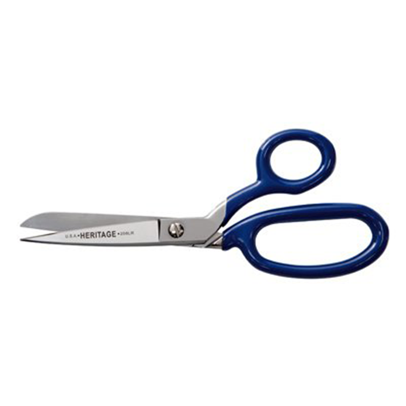 Offset handles allow for easy, straight cutting on flat surfaces. Perfect for general fabric, dressmakers and production work. Heritage trimmers are known for holding an edge through continuous use. Hot drop forged, chrome-plated. Power lock screw.