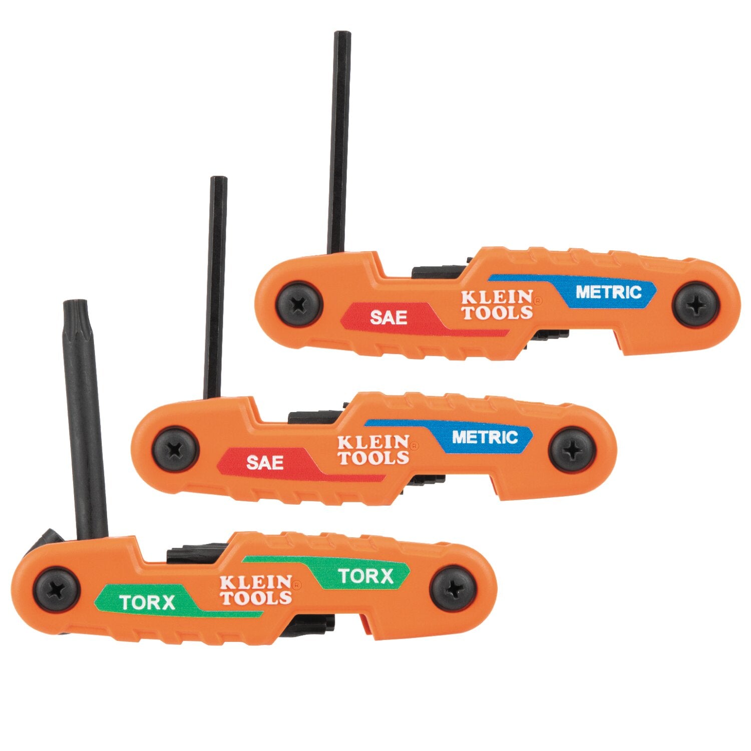 Klein Tools' new Compact Folding Hex Key line features the same highly durable reinforced nylon handle with easy key access but is now pocketable for more convenient storage and carrying. Our hex key sets feature a strategically placed #2 Phillips fastener on the outer body, ensuring effortless adjustment of key tension to suit your preference. Klein Tools' Hex sets are color-coded for quick identification: red for Inch, blue for mm, and green for Torx®, enhancing efficiency.